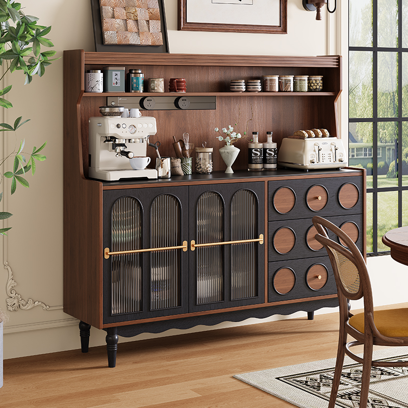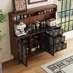 厨房餐边柜复古边柜客厅置物柜落地橱柜咖啡靠墙一体储物柜茶水柜