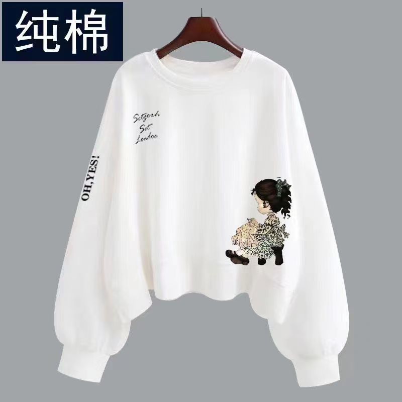 春秋全棉大码 100%纯棉女士长袖 打底衫 上衣女小个子短款 卫衣秋款