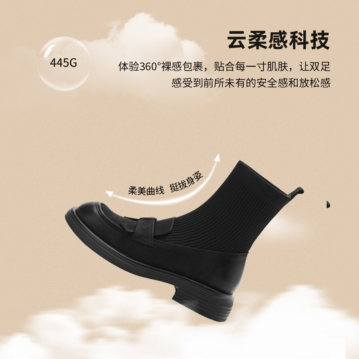星期六2025秋冬新款 袜靴女舒适弹力瘦瘦靴不累脚粗跟短靴子 乐福鞋