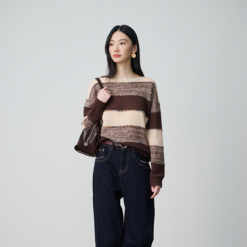 撞色针织上衣 简约条纹软糯毛衣女时尚 NEELLY纳俪商场同款 秋冬新款