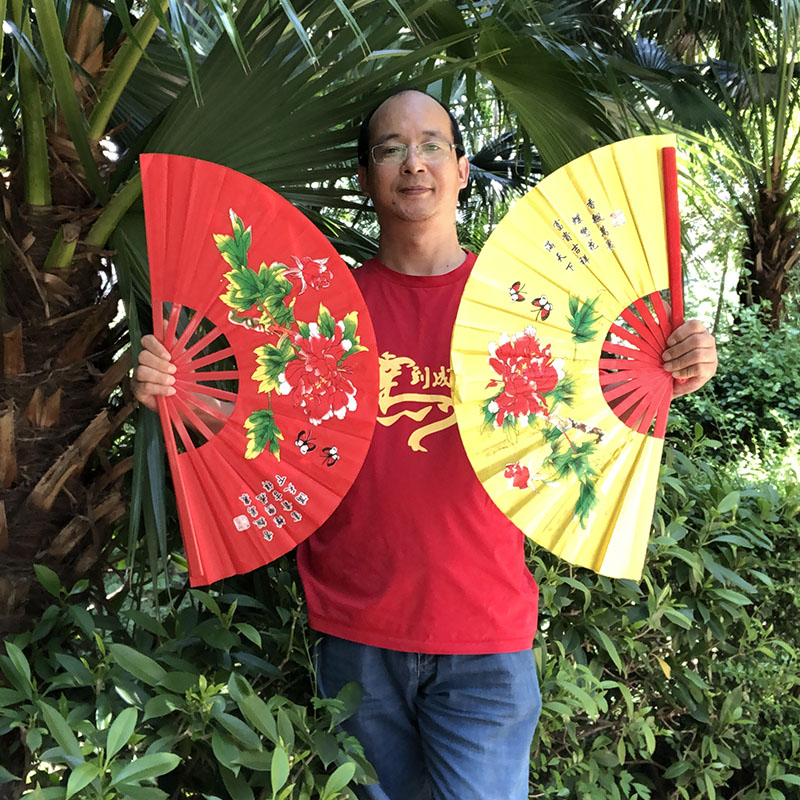 红扇子中国风旗袍走秀扇装 饰工艺扇舞台走秀牡丹梅花龙凤表演折扇