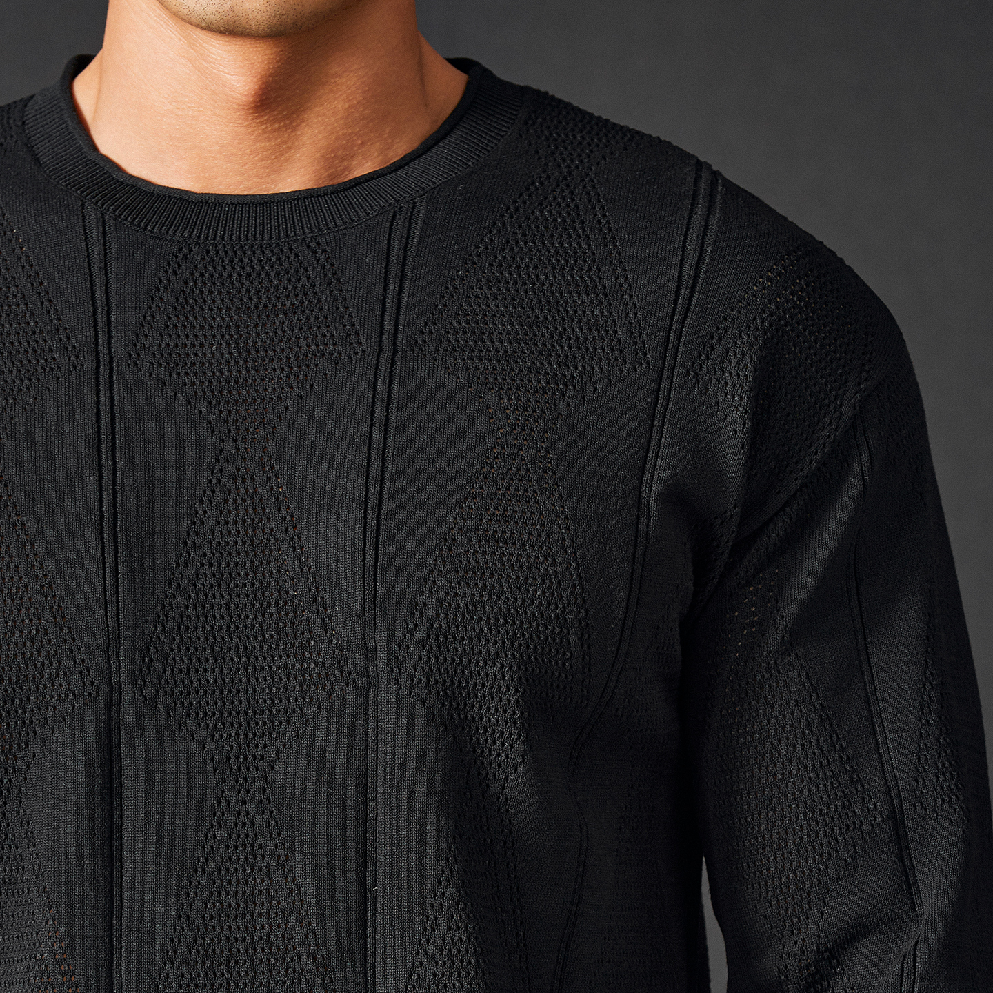 TOMATOPAPA男士 针织毛衣圆领秋冬保暖纯色菱形格提花休闲套头打底