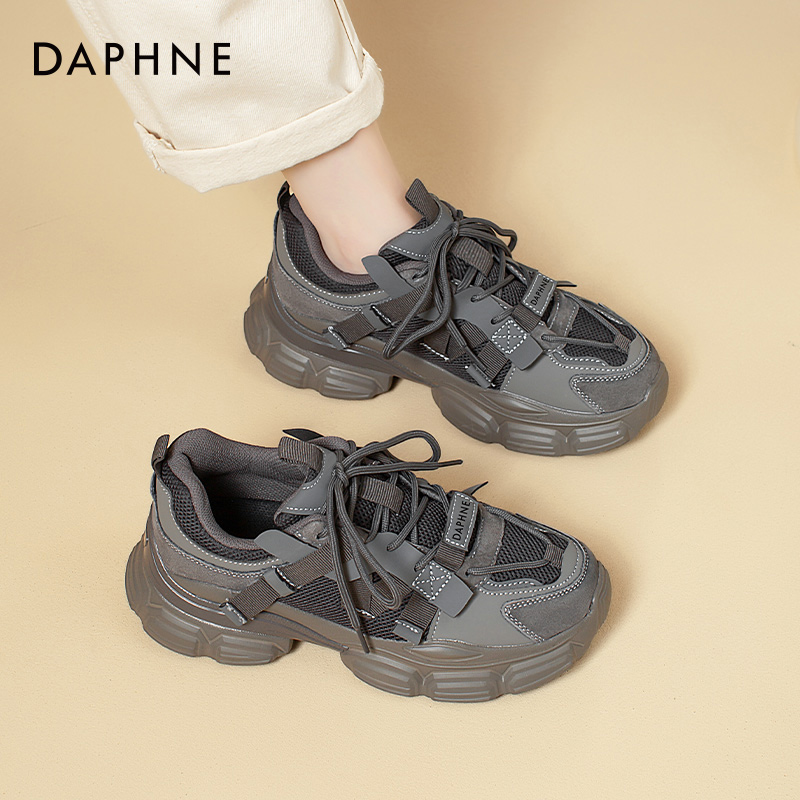 增高显瘦女鞋 达芙妮灰色老爹鞋 爆款 厚底不累脚运动鞋 女2025秋新款