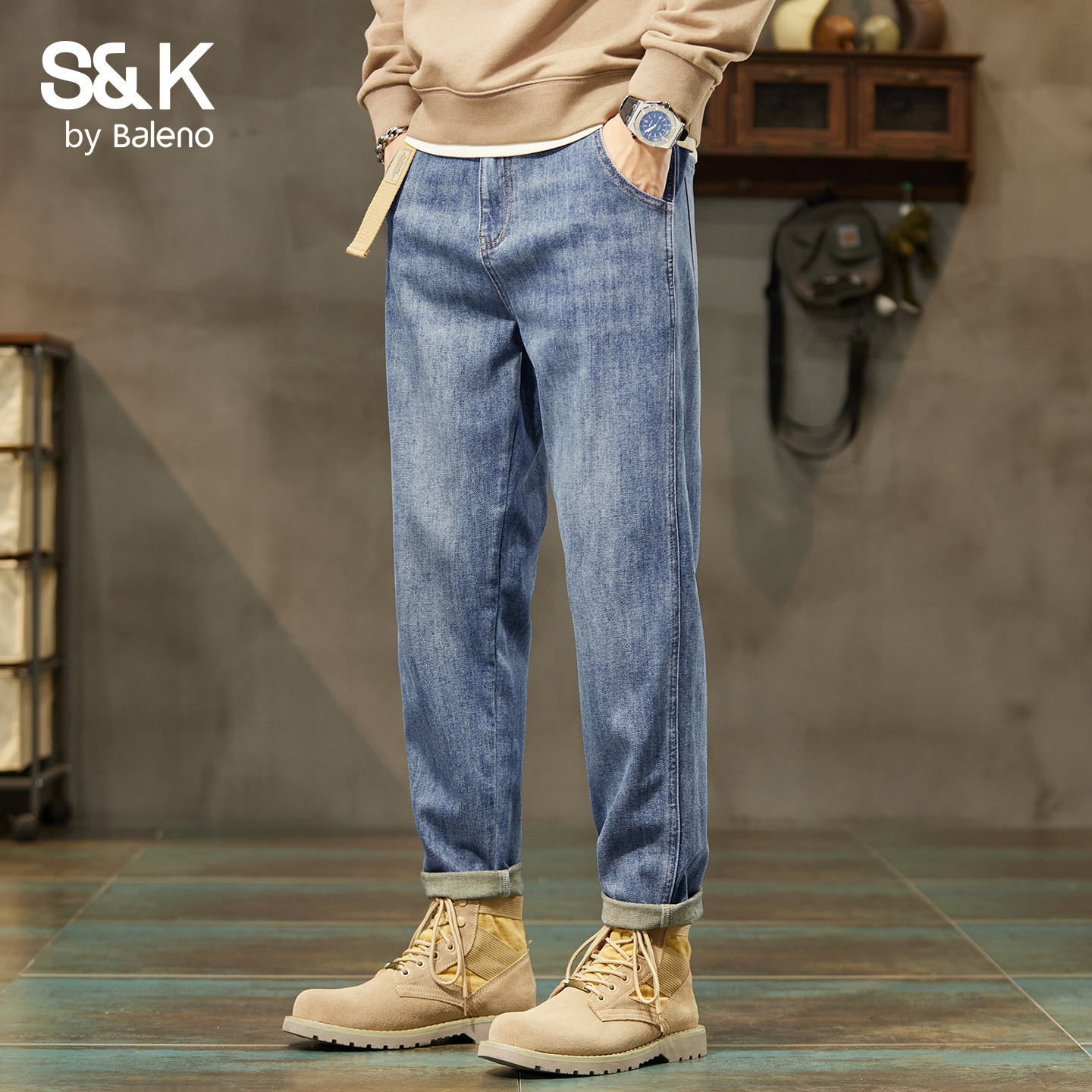 秋季 2025新款 厚款 直筒宽松美式 子MS 班尼路SK水洗牛仔裤 休闲裤 男士