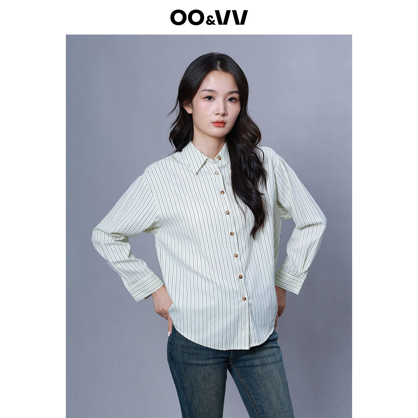 新款 女设计感小众宽松显瘦长袖 韩版 竖条纹衬衫 时尚 oo&vv2025秋季