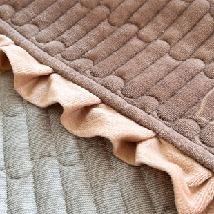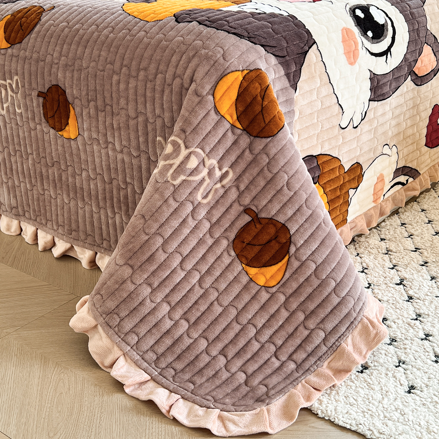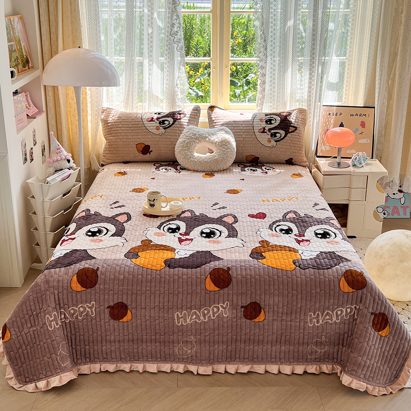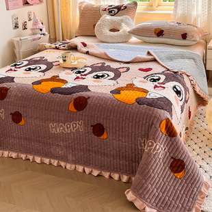 加厚牛奶绒卡通床盖单件冬季 珊瑚绒夹棉花边床单加绒床垫单三件套