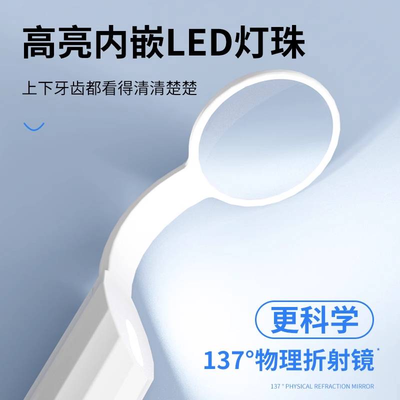 LED微晶防雾口腔镜牙齿内窥镜看牙镜子牙医牙科家用带灯检查工具