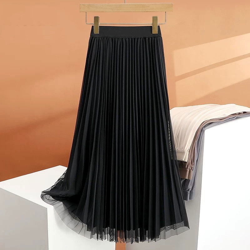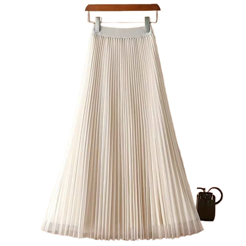 气质甜美百褶半身裙女2025新款 高腰遮肉显瘦A字网纱中长纱裙 大码