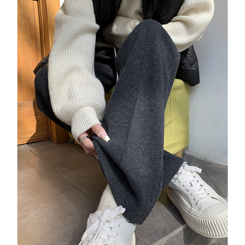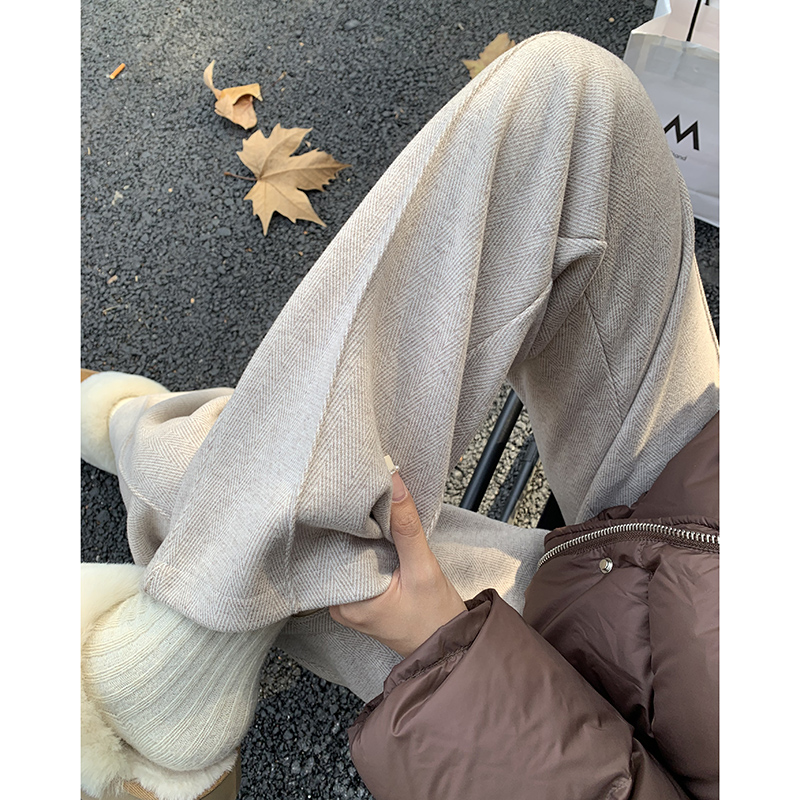 人字纹毛呢裤 子2025新款 窄版 阔腿裤 灰色直筒裤 女大码 女秋冬加绒裤