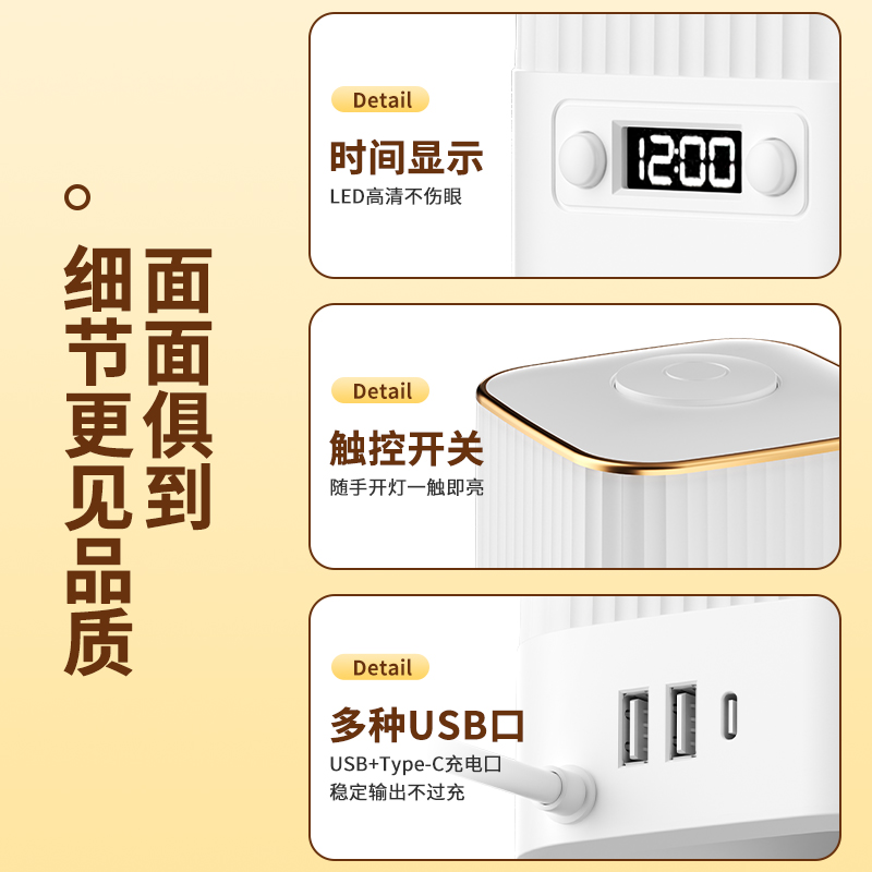米系家用LED台灯主卧室床头灯插座小夜灯婴儿喂奶护眼睡眠灯充电