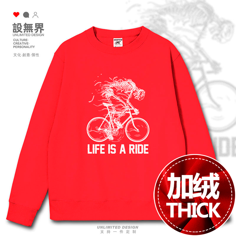 潮设 创意印花帽衫 无界 骷髅破旧自行车连帽卫衣男女个性 复古美式