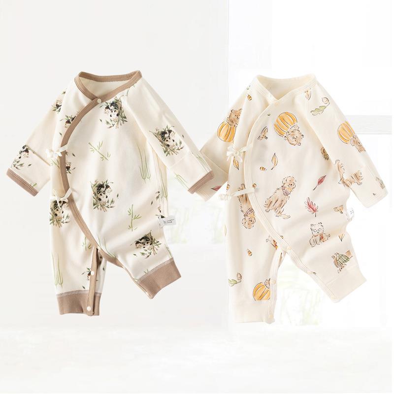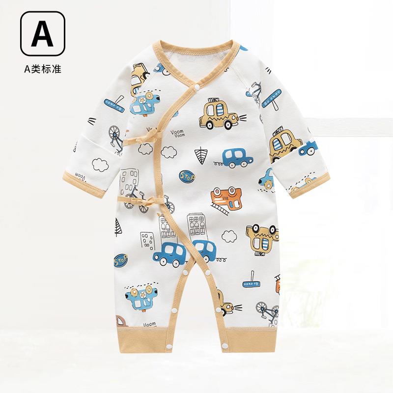 童泰宝贝新生儿纯棉a类服装 婴儿连体衣系绳无骨蝴蝶绑带哈衣 秋季