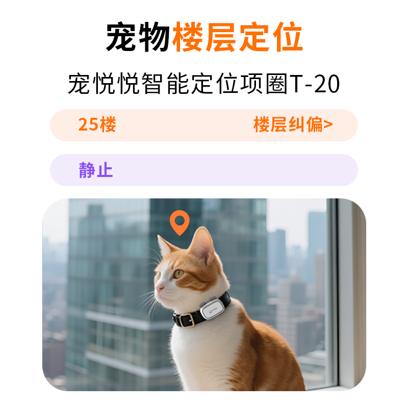 宠悦悦二代宠物GPS定位器防丢器楼层项圈猫狗防水运动监测追踪器