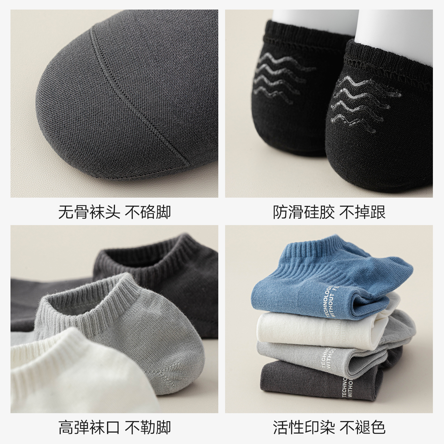 猫人男士 短袜 袜子船袜纯棉浅口隐形短筒防滑不掉跟山茶花香氛秋季