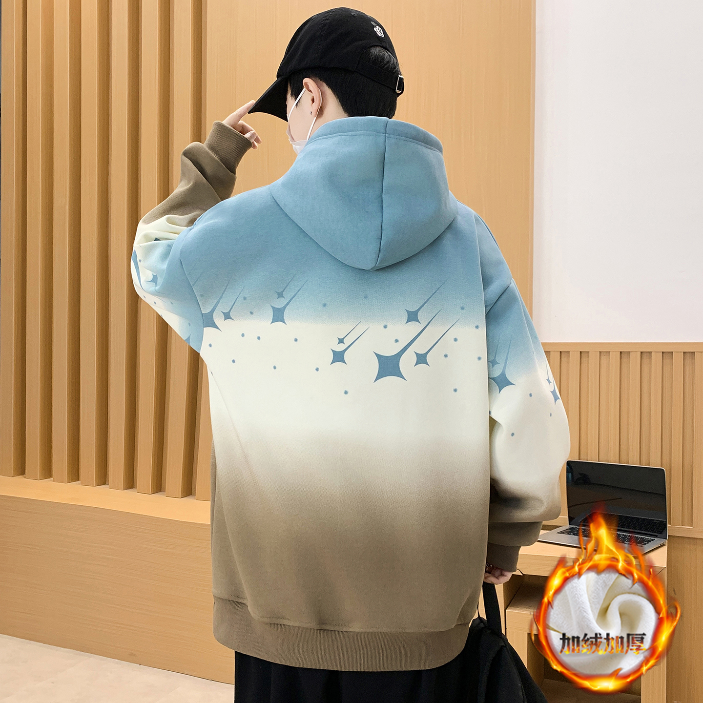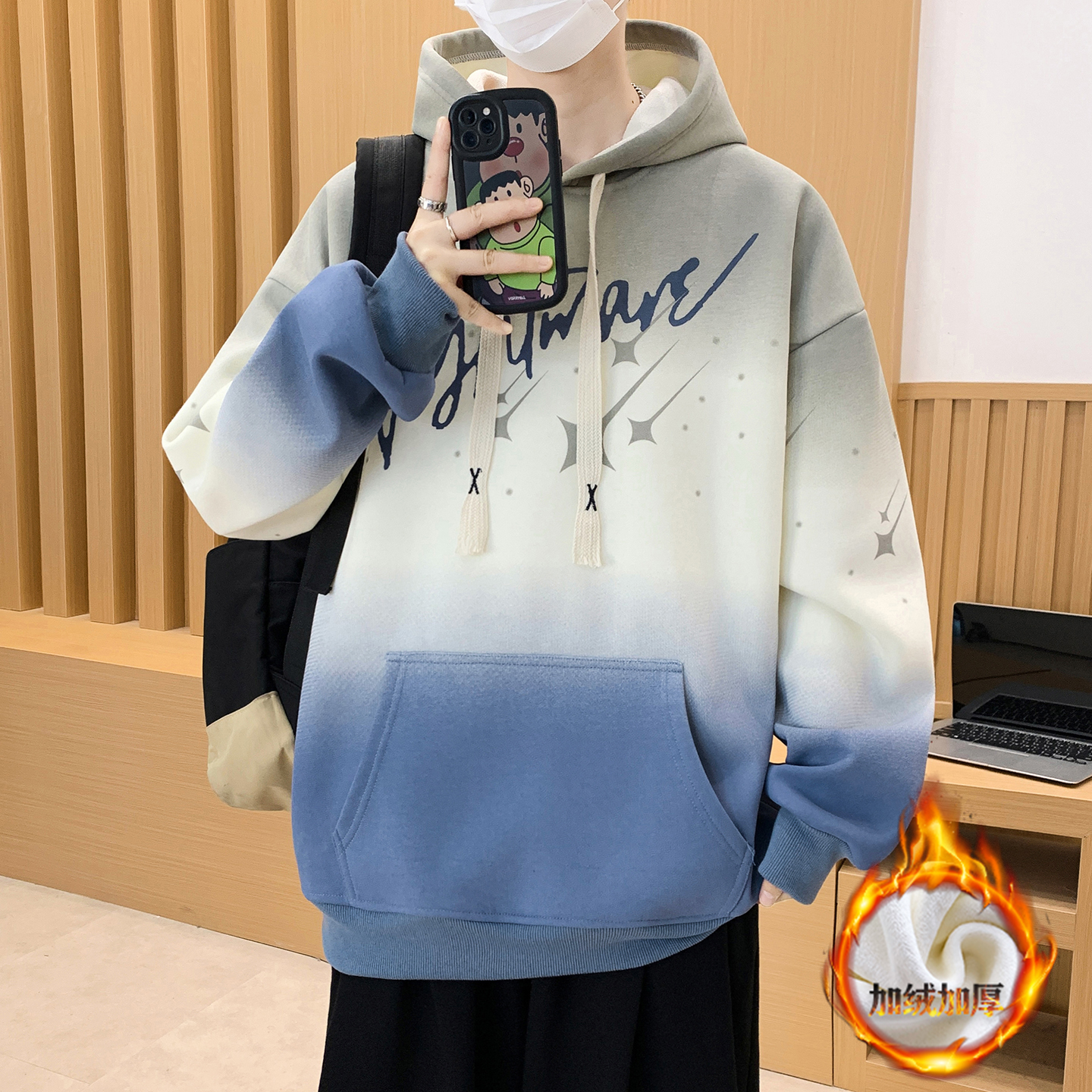 套头上衣百搭外套 保暖潮牌学生长袖 渐变色连帽卫衣男休闲冬季 新款