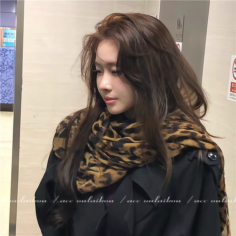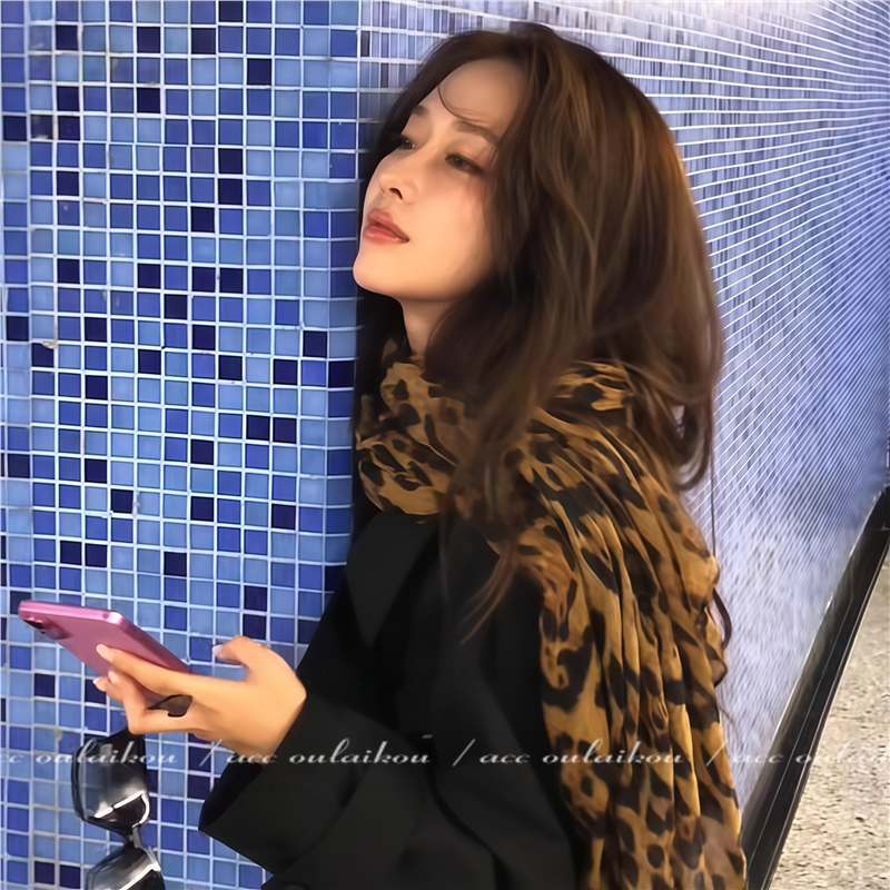 包配件拎环 洋气系脖颈饰长条披 豹纹丝巾咖色复古冬围巾保暖时尚