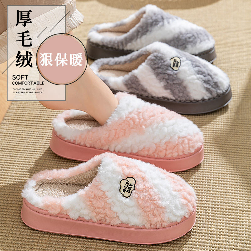 室内家居情侣款 棉拖鞋 加绒保暖毛绒拖鞋 冬季 棉拖男防滑 女2025新款