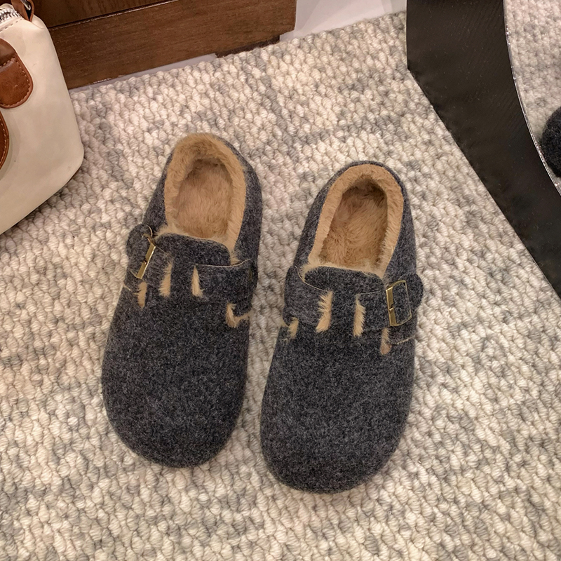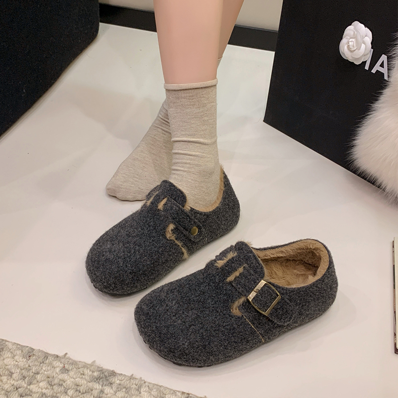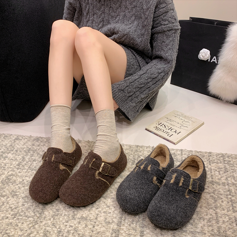 防滑棉鞋 勃肯鞋 女2025秋冬气质加绒玛丽珍单鞋 毛呢厚底加绒毛毛鞋