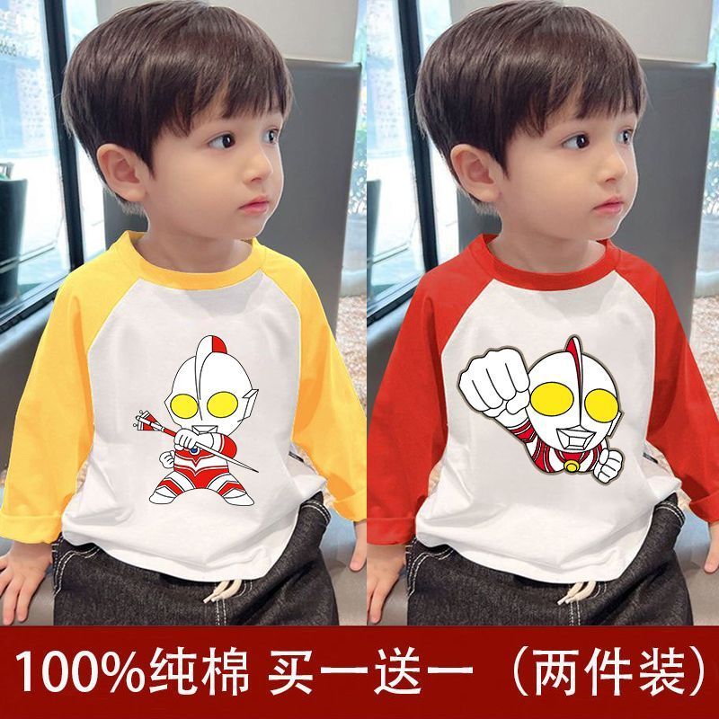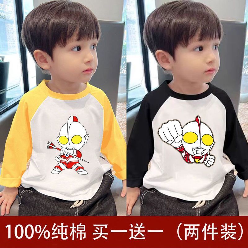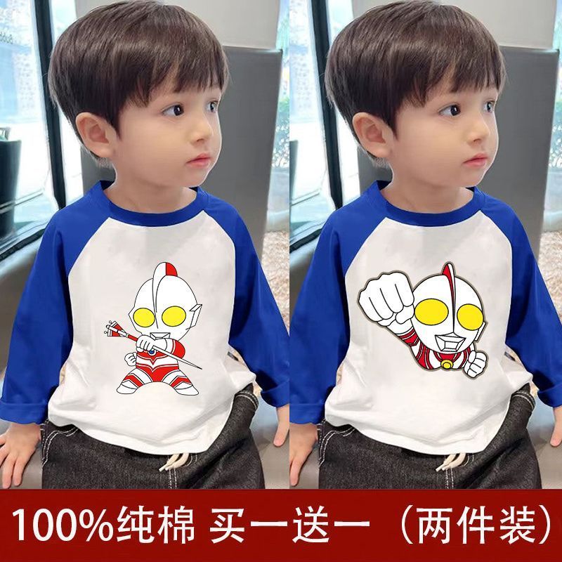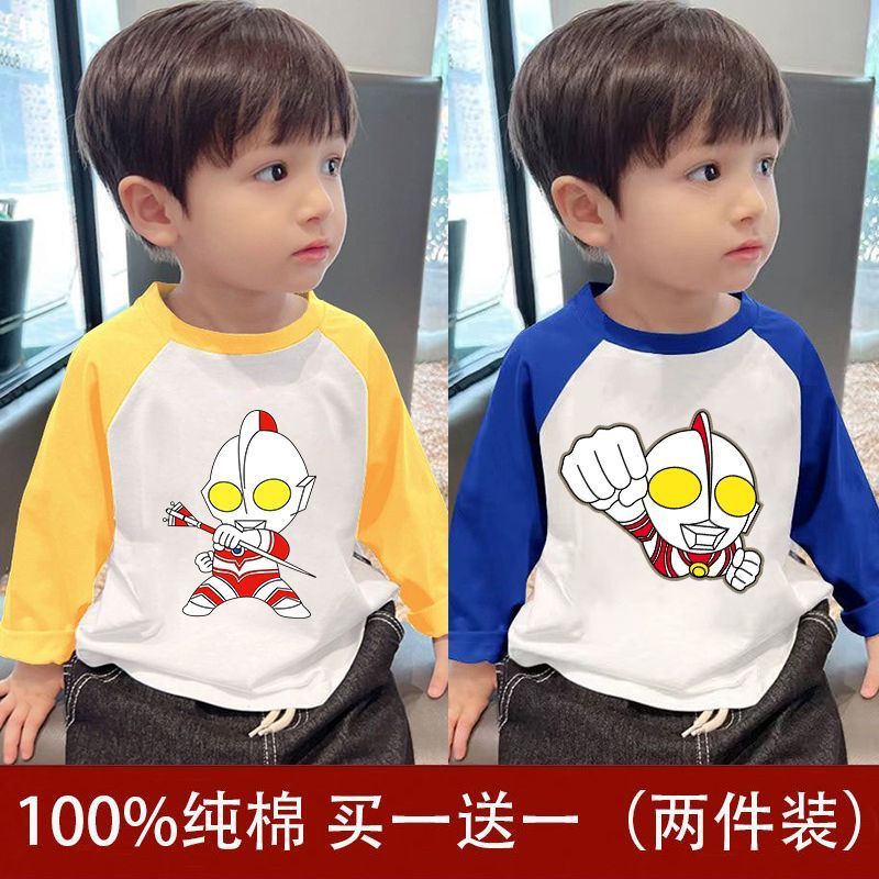 上衣中小童宝宝打底衫 纯棉儿童长袖 卡通插肩袖 男童装 T恤春秋新款