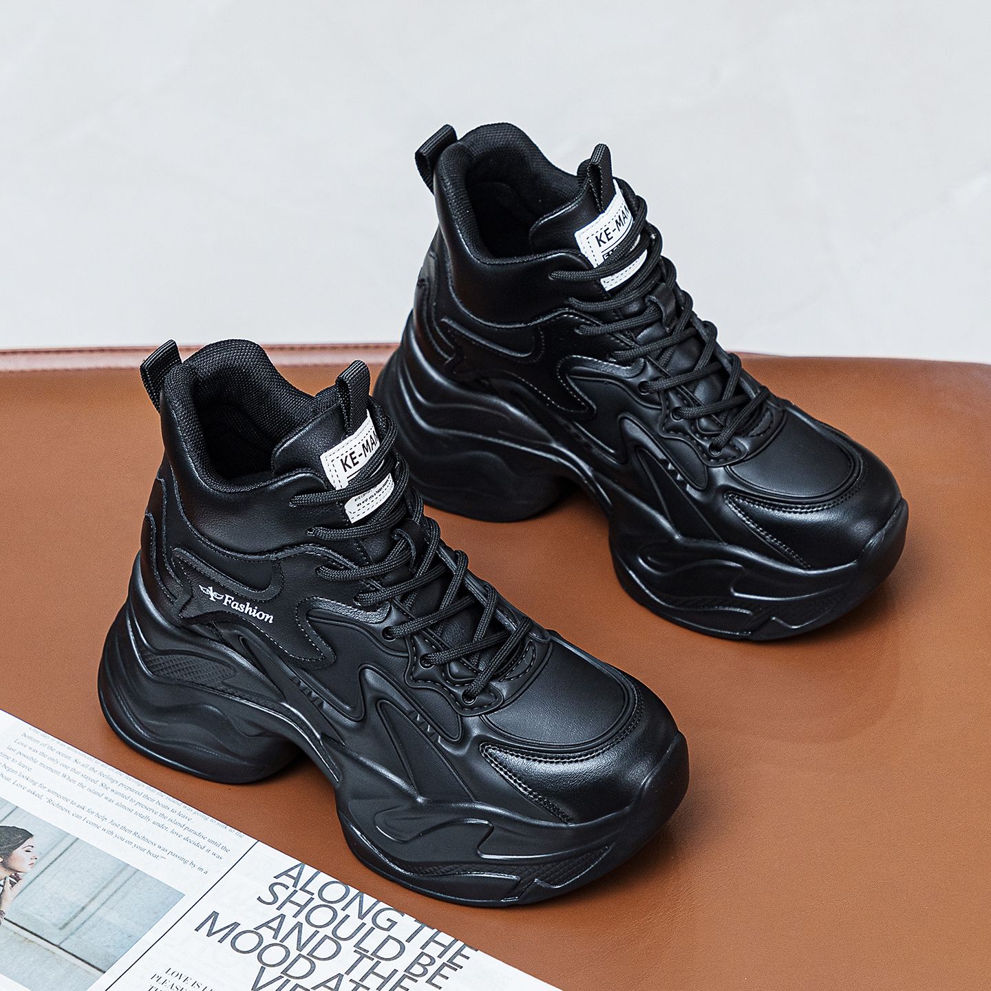 百搭休闲皮面防水青少年跑步运动篮球增高老爹鞋 森马高帮男鞋 秋季