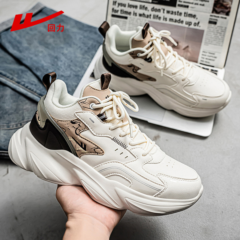 秋季 2025新款 皮面鞋 子男士 回力男鞋 百搭运动休闲鞋 厚底增高老爹鞋