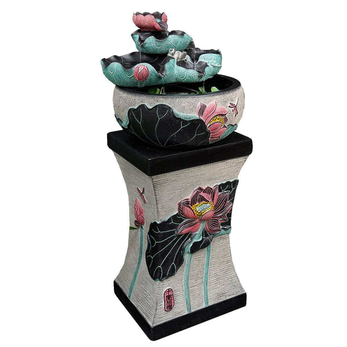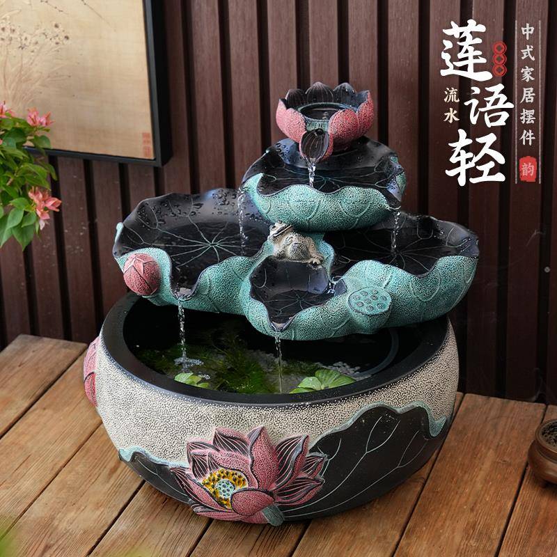 创意荷花喷泉流水摆件招财水景加湿器新中式 风水轮客厅桌面小鱼缸