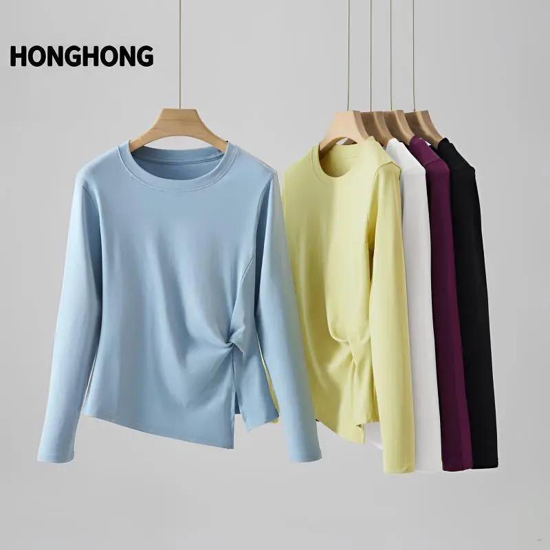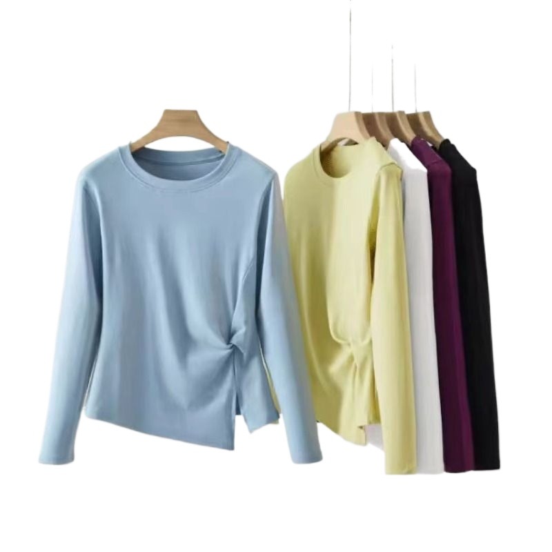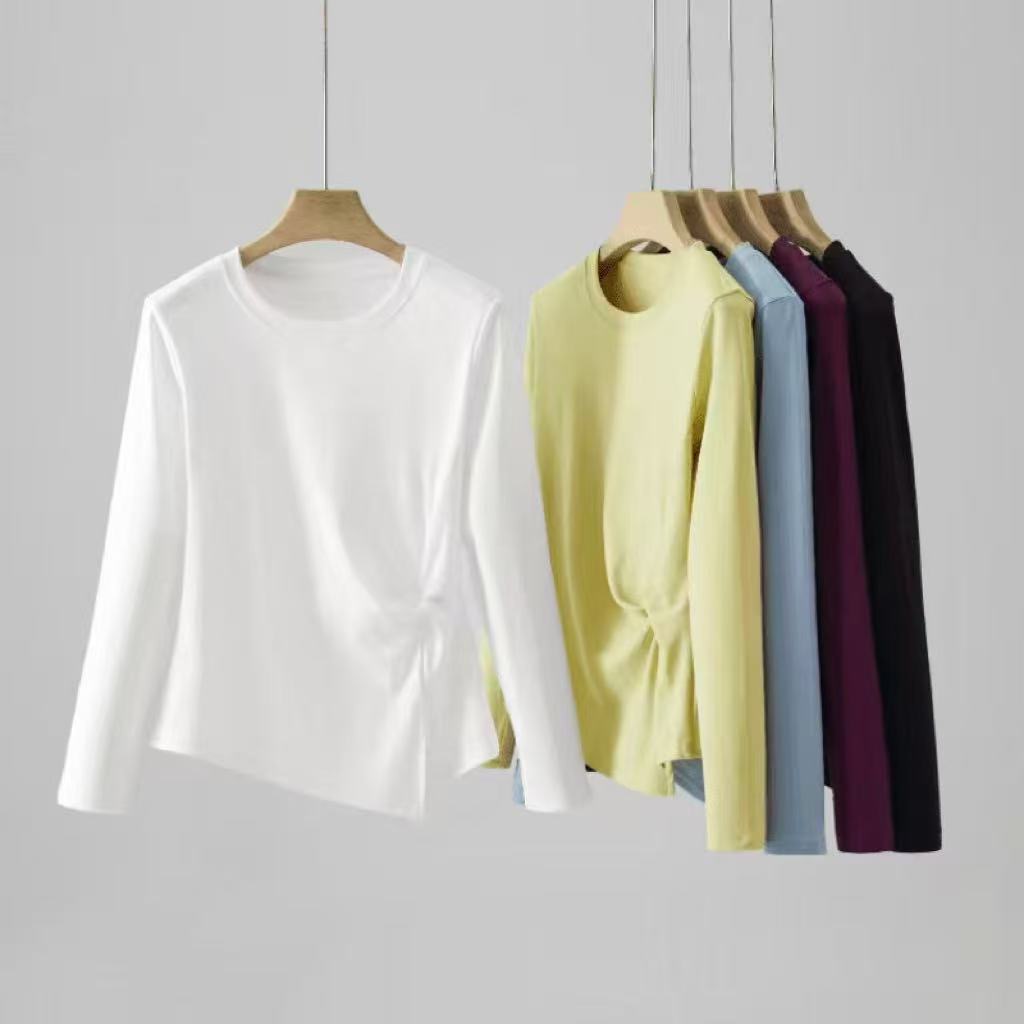 t恤胖mm遮肚子显瘦正肩上衣 设计感不规则黑色长袖 大码 女2025春季