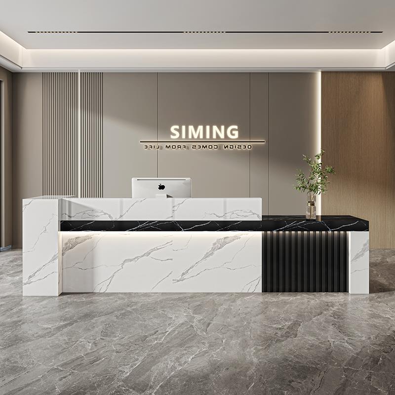 收银台柜台公司接待台现代简约前台美容院酒店烤漆吧台大厅迎宾台