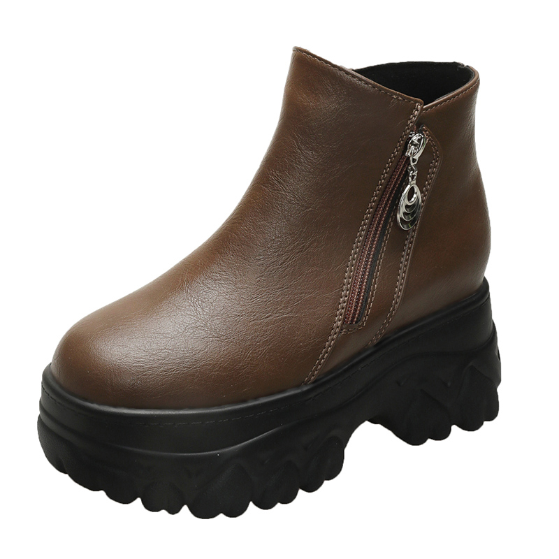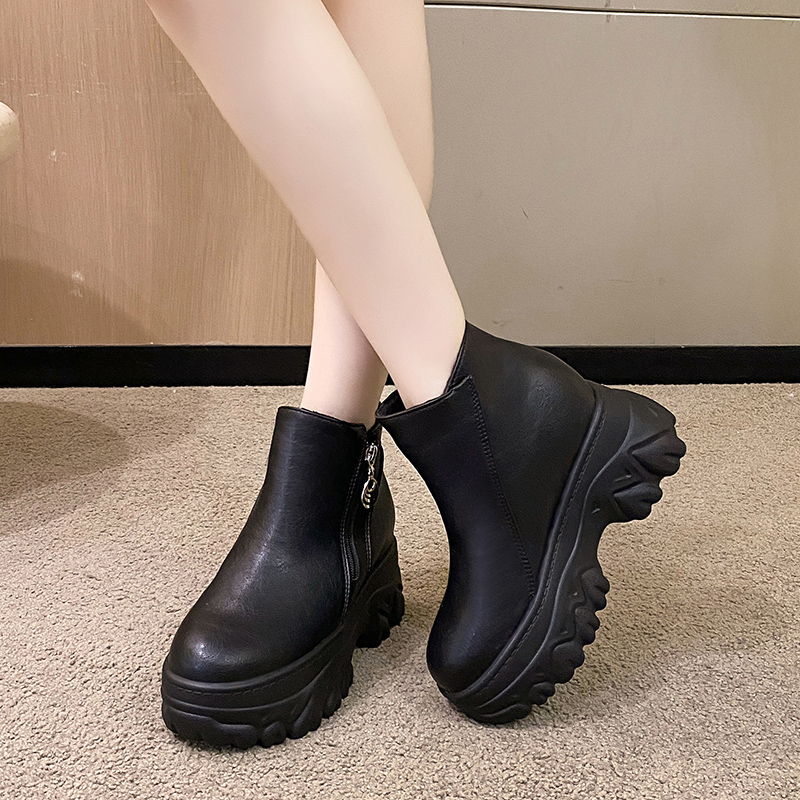 黑色增高靴子女时尚 新款 休闲皮面短靴 2025秋季 环球厚底马丁靴女款