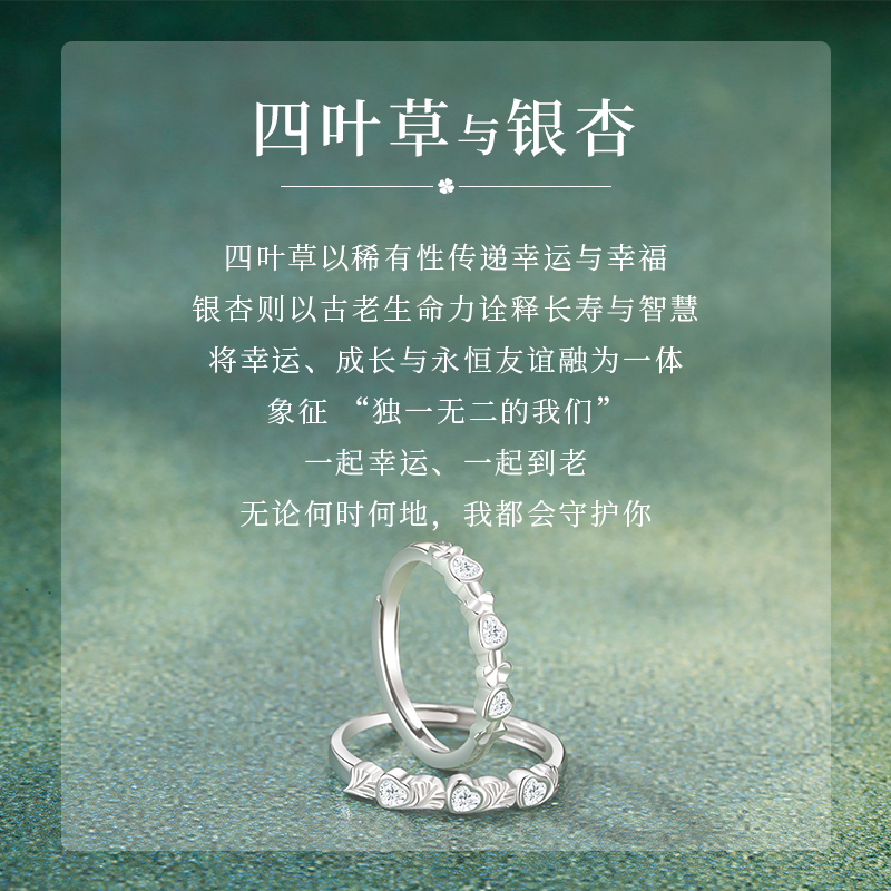 杏叶四叶草闺蜜对戒银小众可调情侣戒指一对女女款 生日礼物送女友