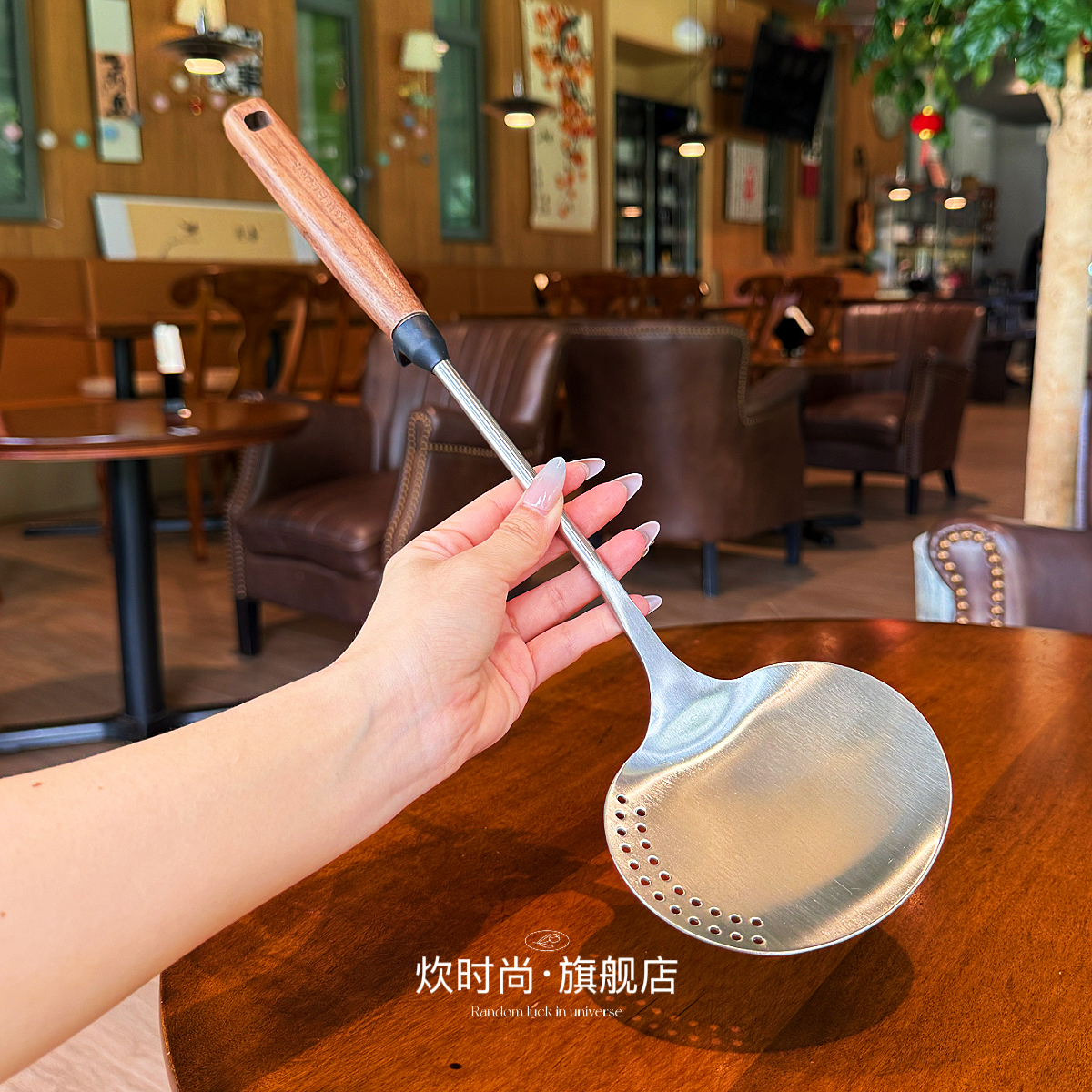 304不锈钢炒菜铲子胡桃木柄炒菜勺炒勺家用贵州锅铲勺子蘑菇铲