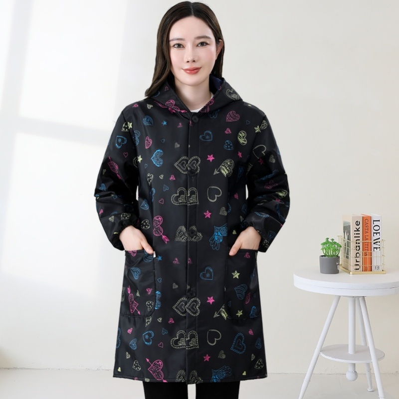 女士冬天加绒加厚上衣围裙厨房防水防油带袖 中长款 罩衣长款 新男士