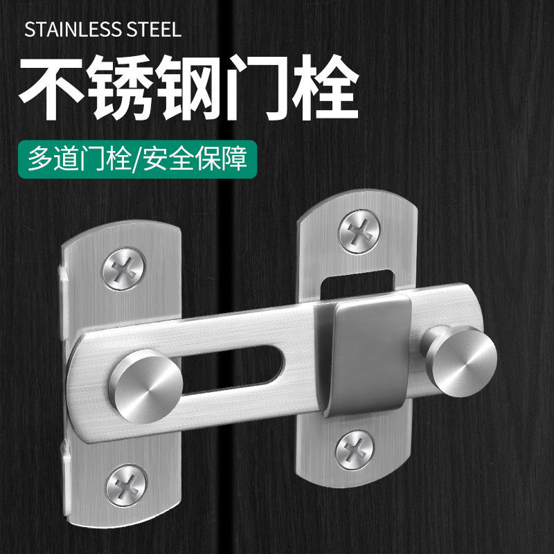 明装 门搭扣免打孔防盗门扣门栓门锁移门卫生间卡扣 插销不锈钢老式