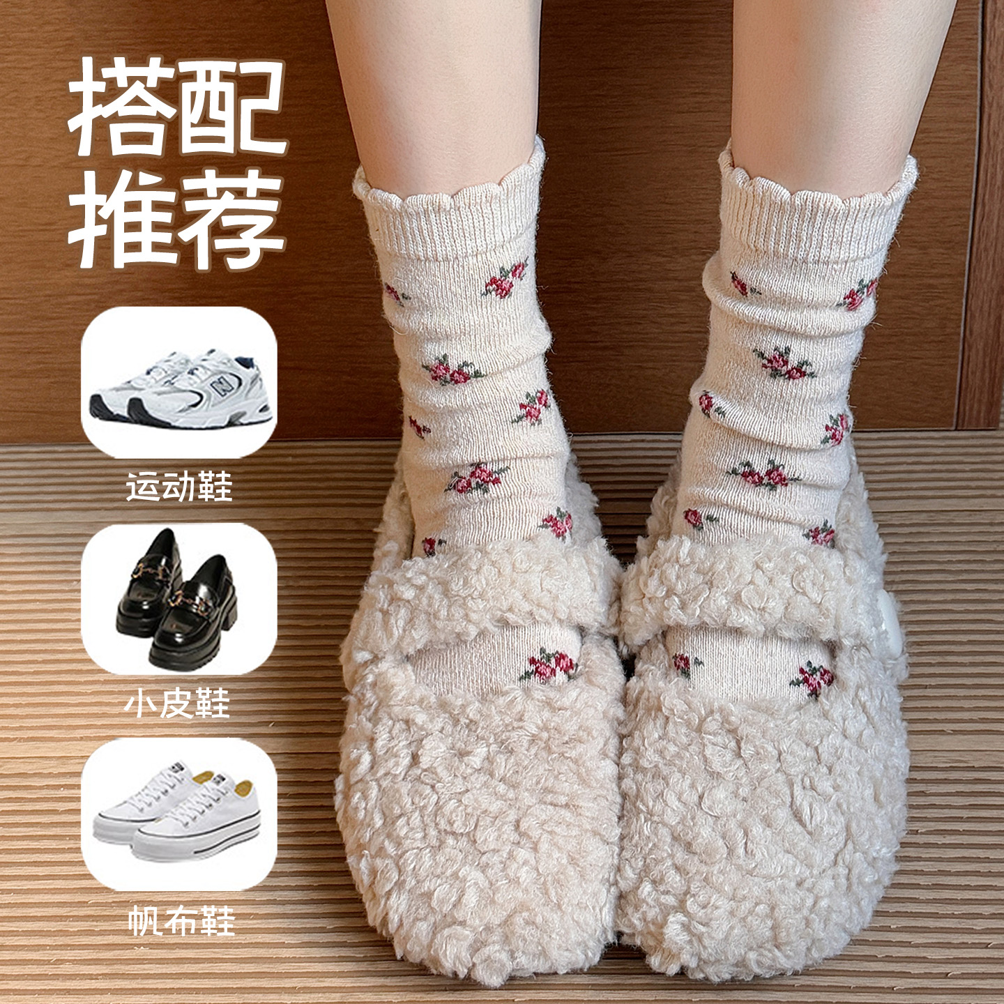 搭配小皮鞋 中筒袜秋冬季 白色防臭月子无骨 纯棉春秋季 堆堆袜子女款