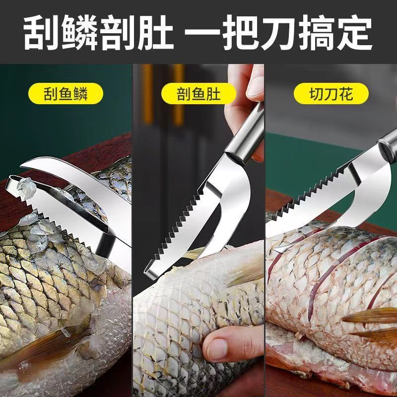 鱼鳞刨鱼肚刀不锈钢二合一刮鱼鳞器家用去鳞破肚杀鱼刀