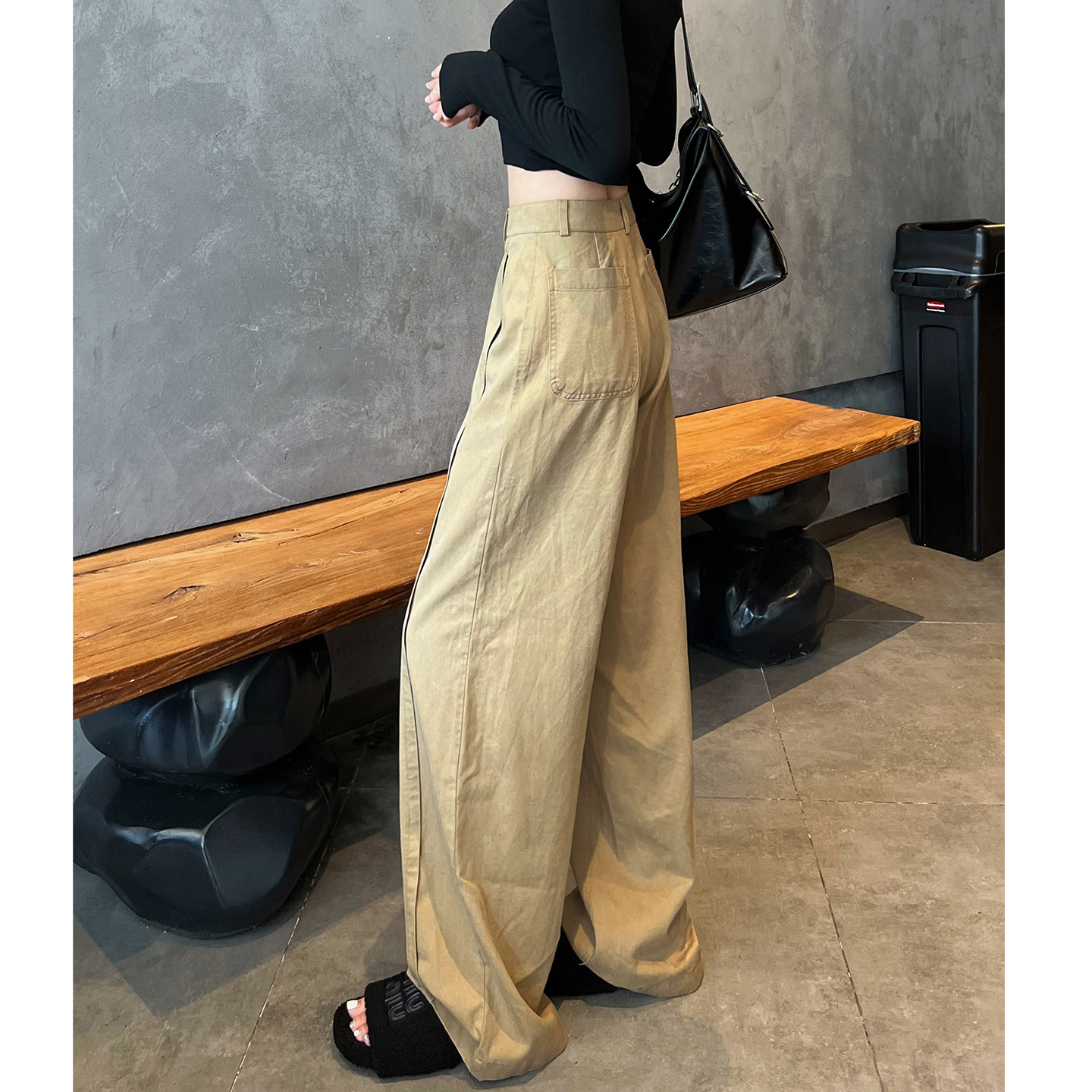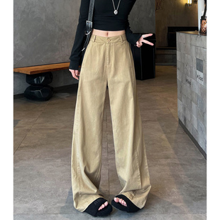 女春秋新款 休闲直筒慵懒松弛感裤 高腰垂感窄版 裤 子 西装 黑色阔腿裤