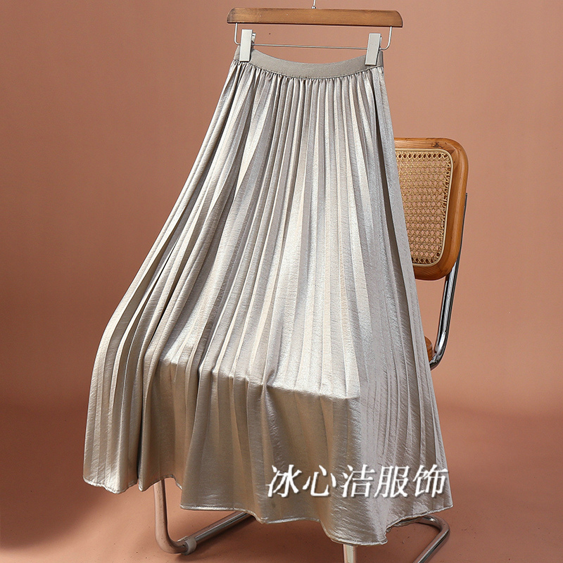 RUISHI芮时欧若风丁达尔裙仿真丝光泽感压褶半身裙女春秋 现货
