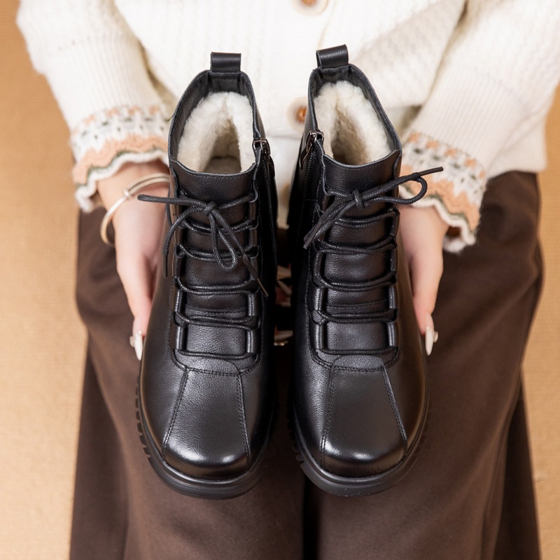 保暖加绒面包鞋 防水短筒增高棉鞋 新款 松糕厚底雪地靴女2025年冬季
