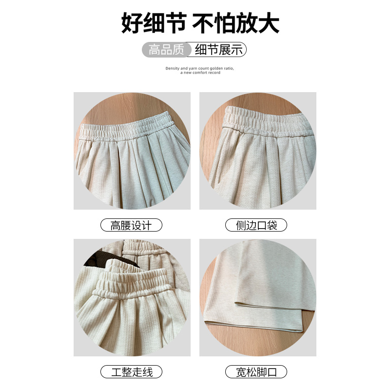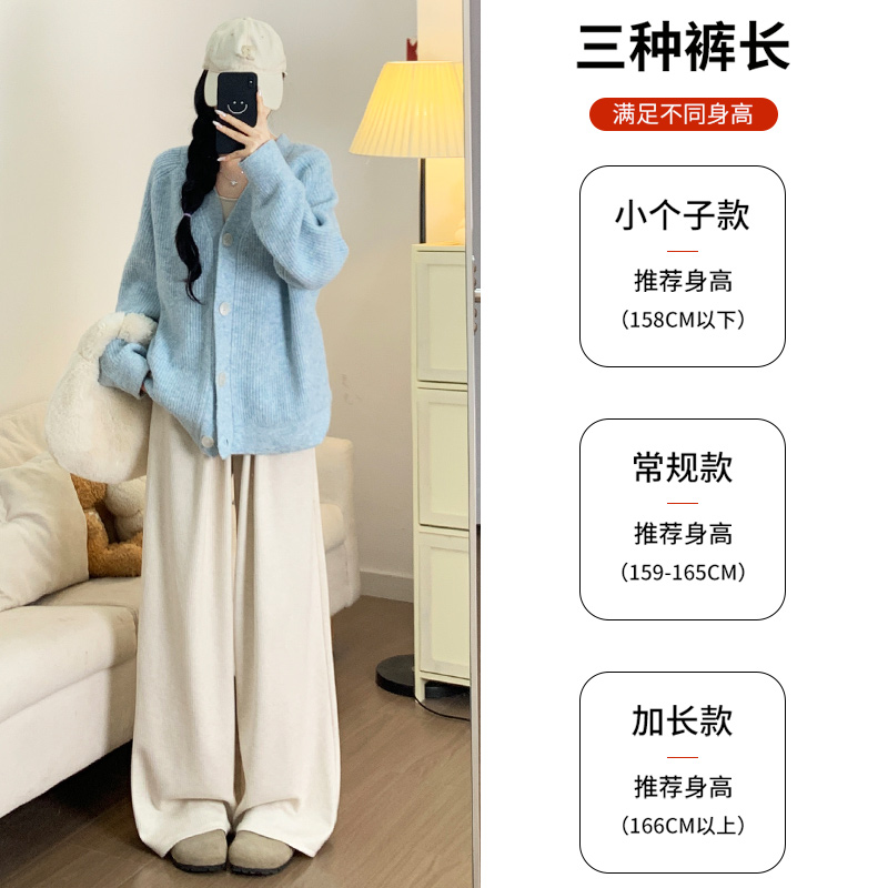 高腰垂感宽松直筒小个子山本羊绒休闲裤 白色棉羊毛阔腿裤 女春秋季