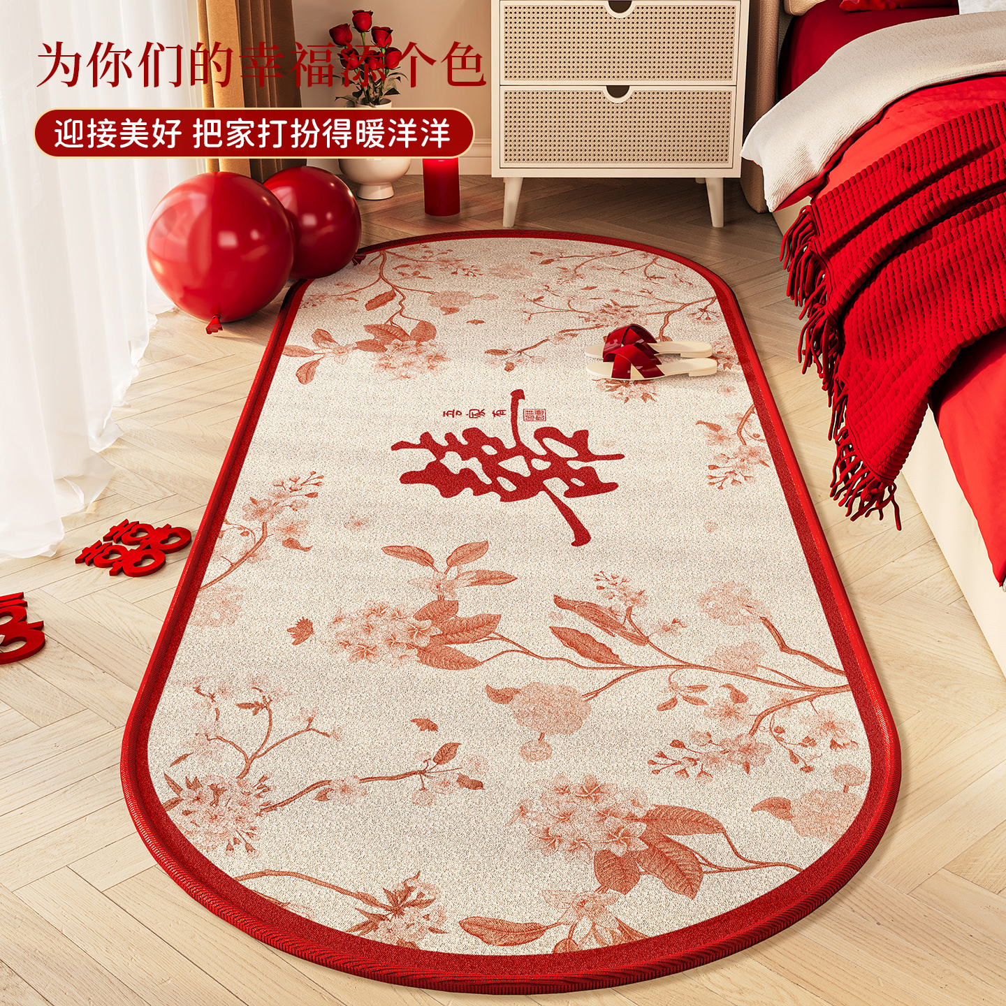 赛波斯异形床边毯长条绿色柔软防滑高级感卧室飘窗衣帽间客厅地毯