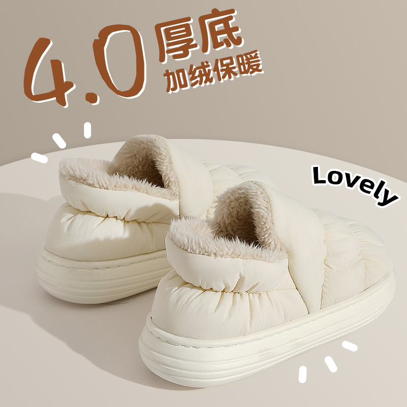 室内家居厚底防滑包跟加绒保暖棉鞋 2025新款 男 女士冬季 防水棉拖鞋