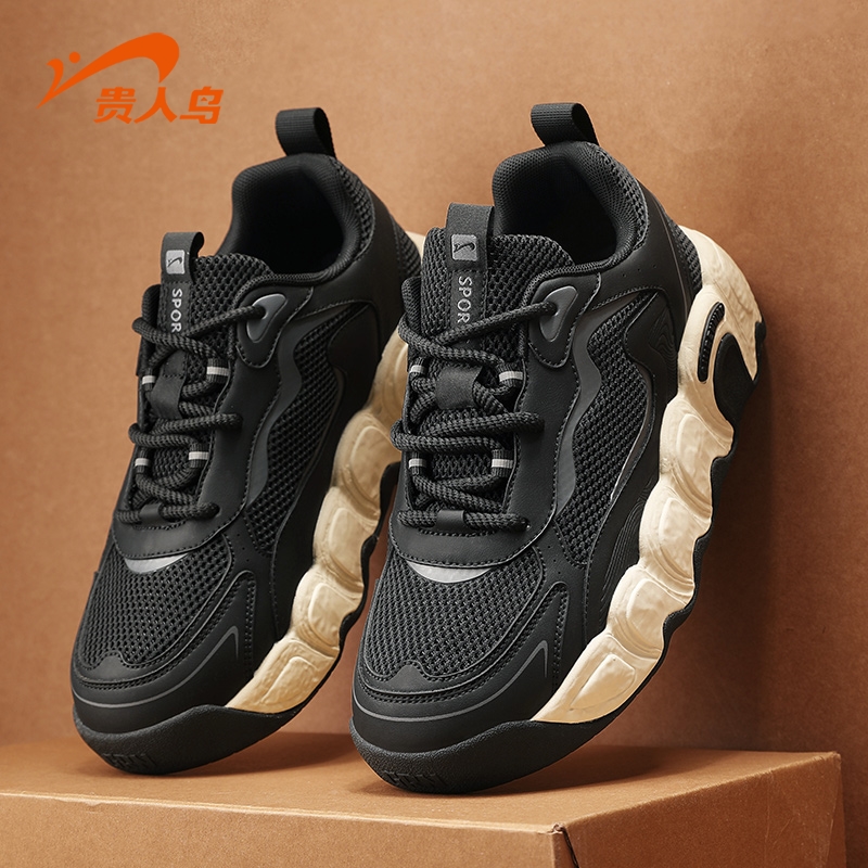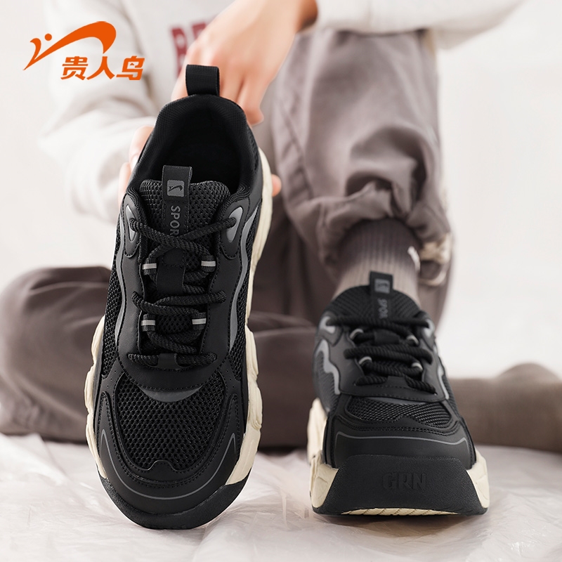 2025新款 男士 休闲鞋 贵人鸟男鞋 男款 秋季 厚底增高黑色老爹鞋 运动鞋