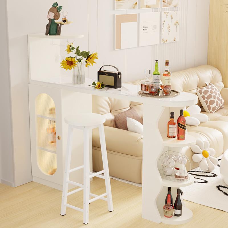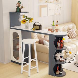 奶油风岩板吧台桌家用客厅隔断柜酒柜餐边桌一体柜中岛台隔断边柜