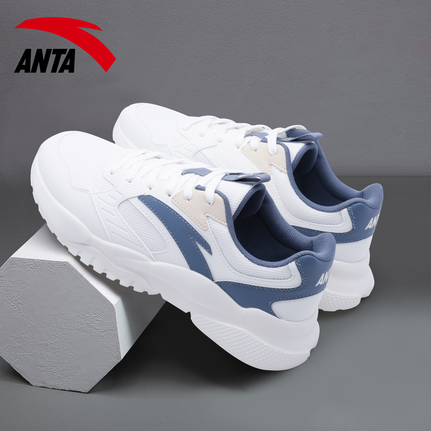 男鞋 跑步鞋 2025秋季 白色防泼水加绒皮面休闲鞋 子男 新款 安踏运动鞋