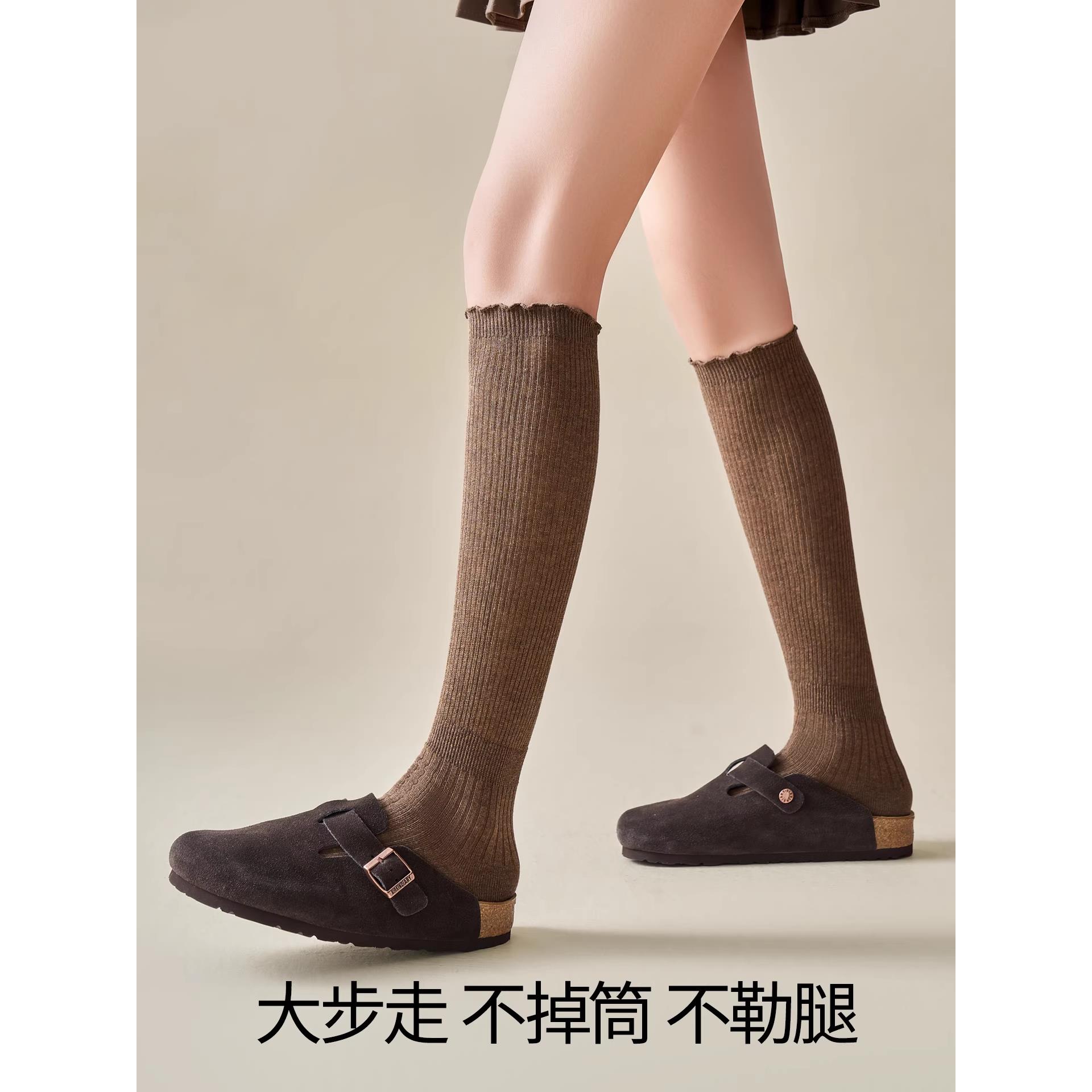 白色花边袜子女秋冬季 长筒袜miu系无骨堆堆小腿袜配长筒靴堆堆袜