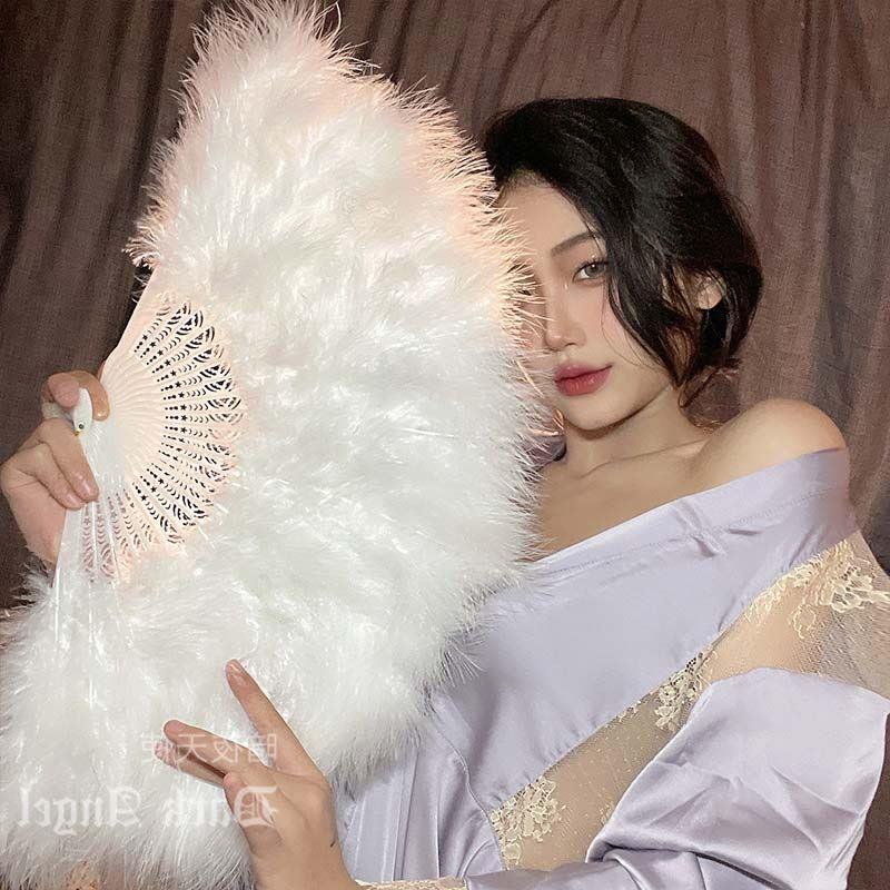 羽毛扇子夜上海舞蹈表演毛绒民国古风毛毛扇白色鹅毛折扇拍照道具