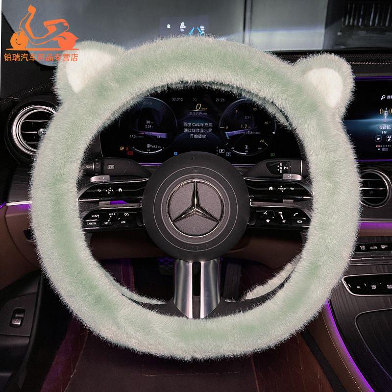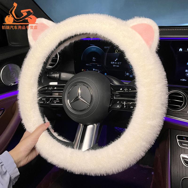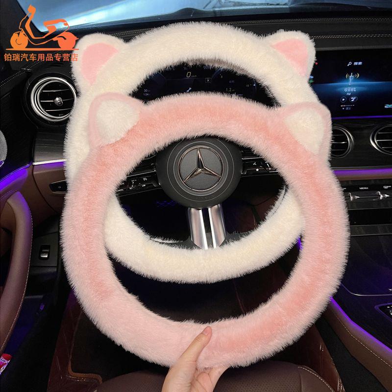 网红方向盘套冬季 饰可爱卡通猫耳朵冬天毛毛车把套 濑兔毛女车载装