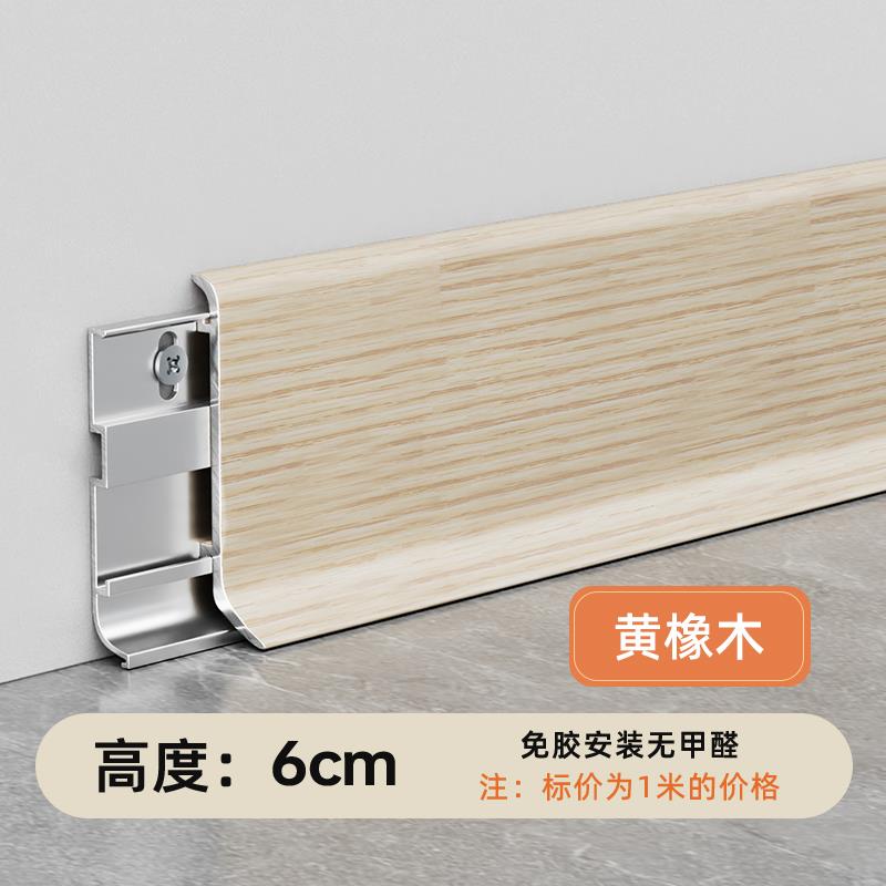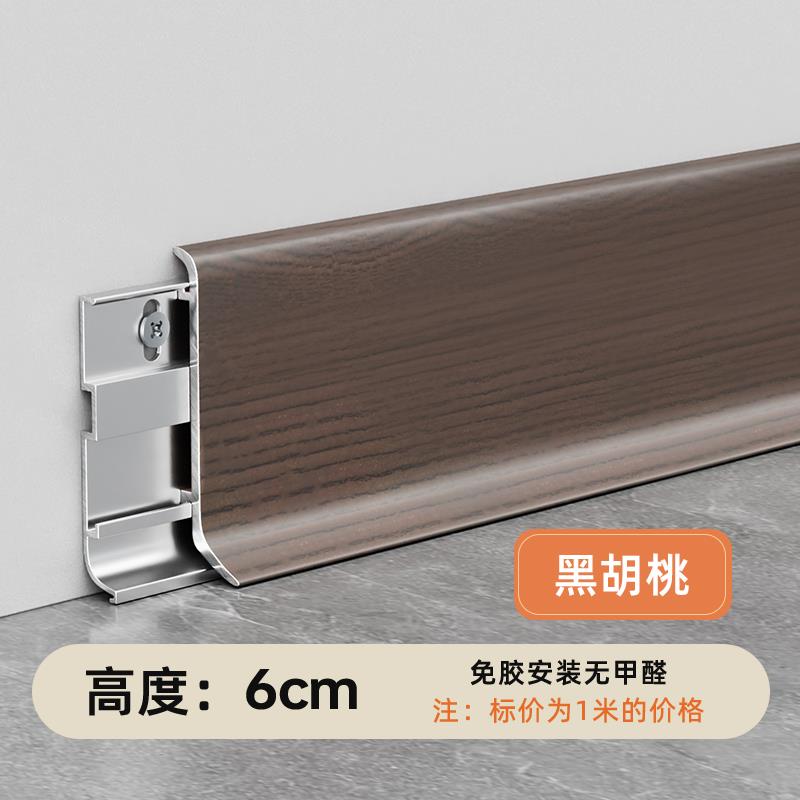 木纹铝合金踢脚线不锈钢金属地角线极窄卡扣贴脚线6超薄上门安装
