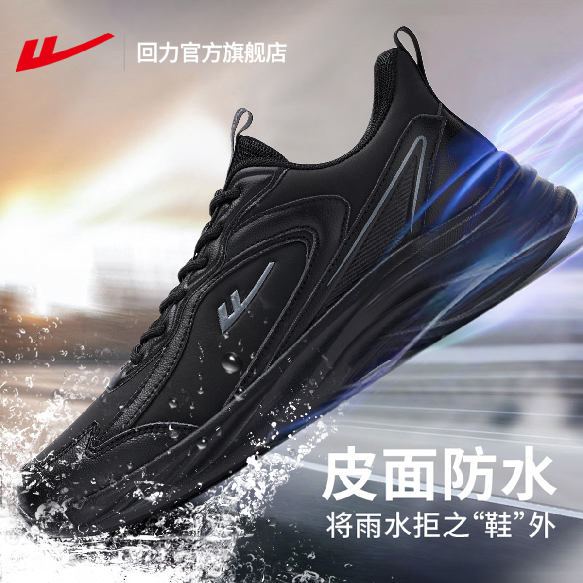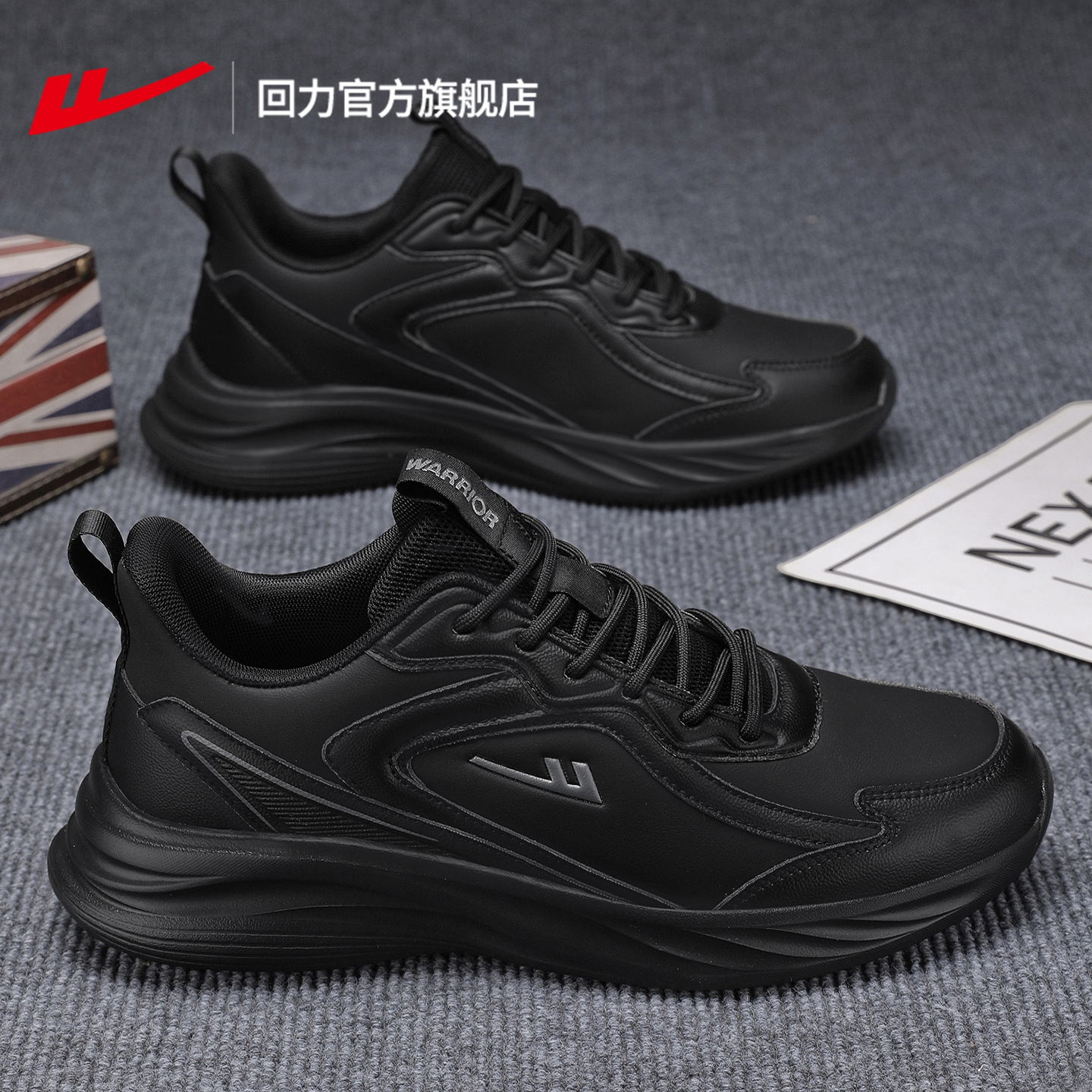 2025新款 皮面运动鞋 软底防水跑步休闲鞋 黑色秋季 子男正品 特步男鞋