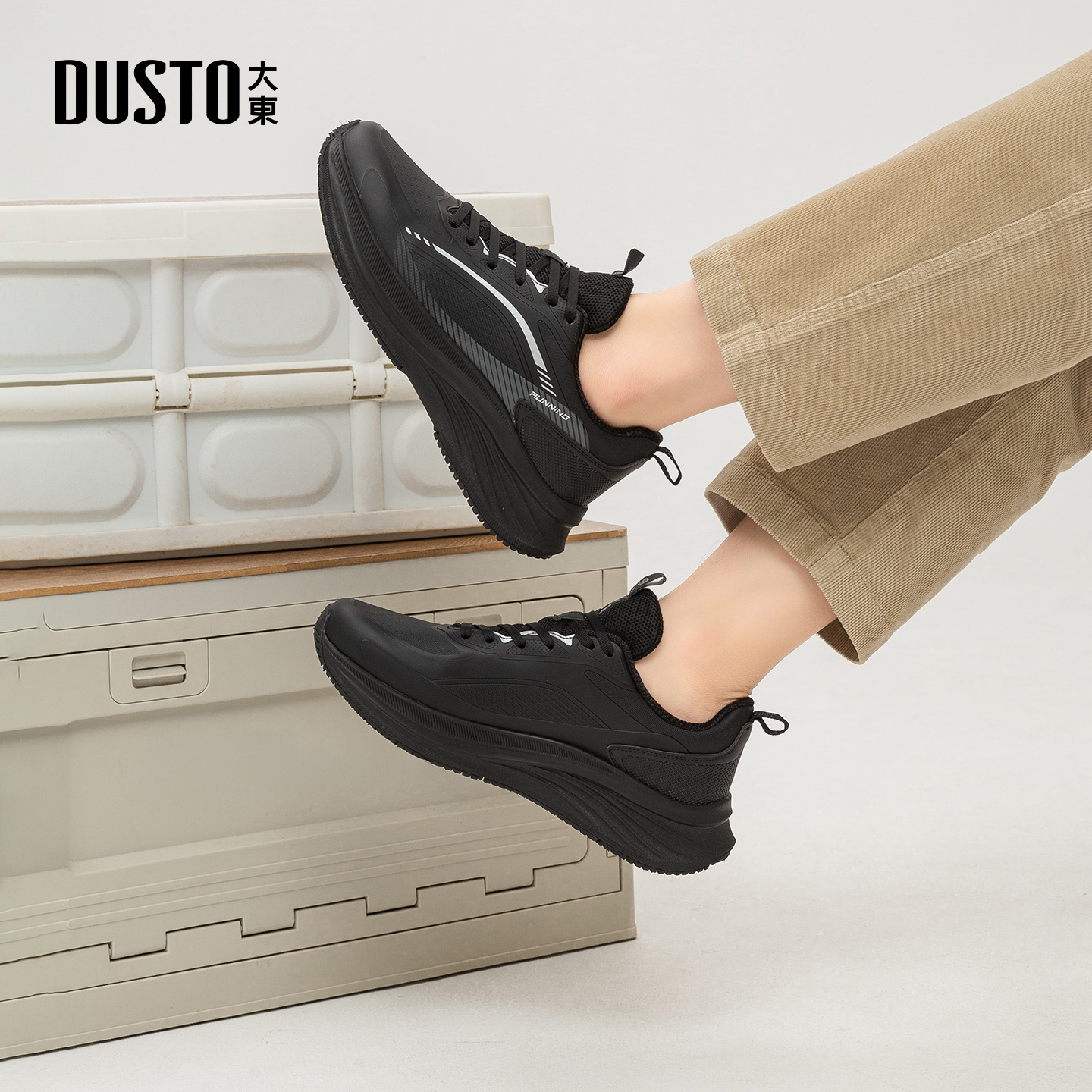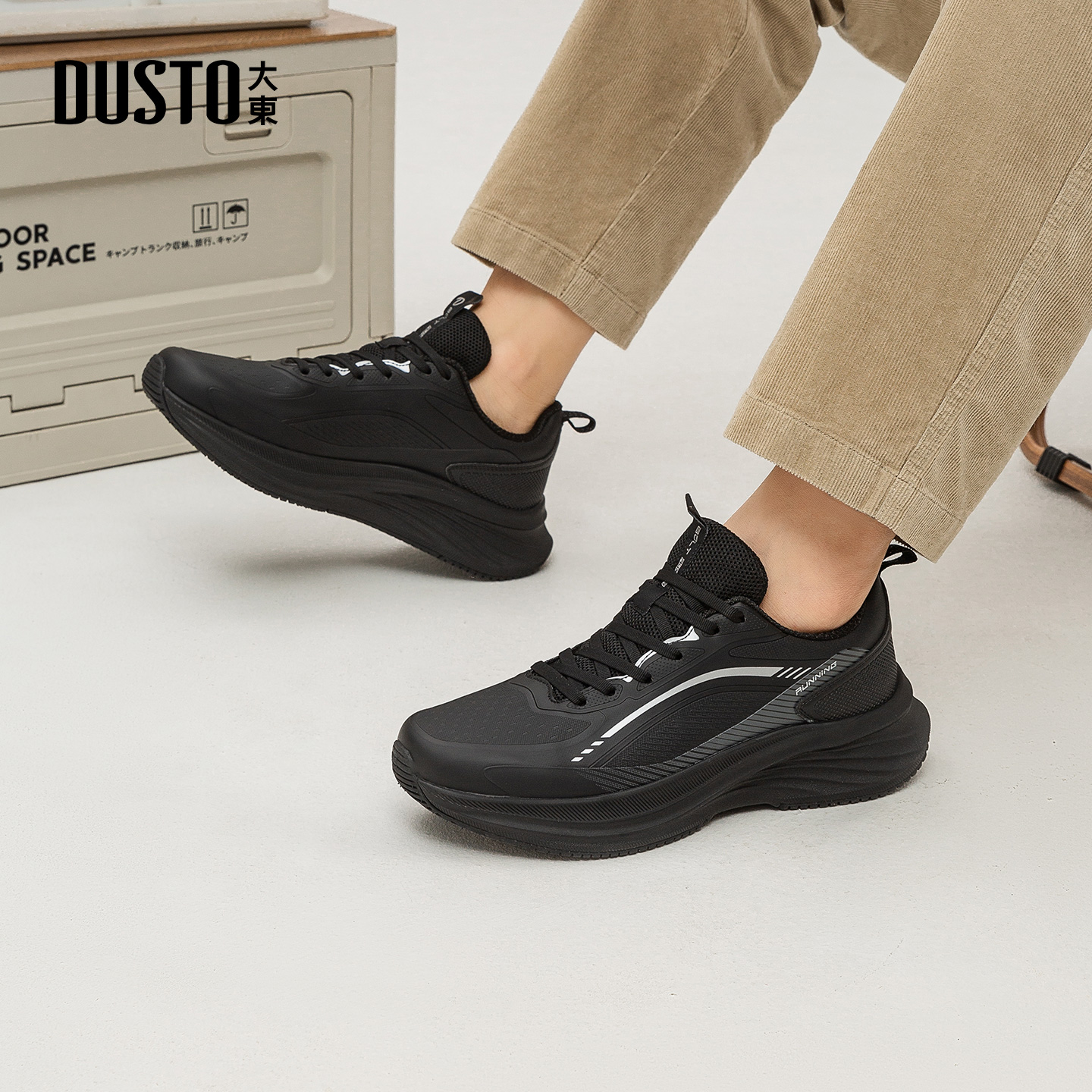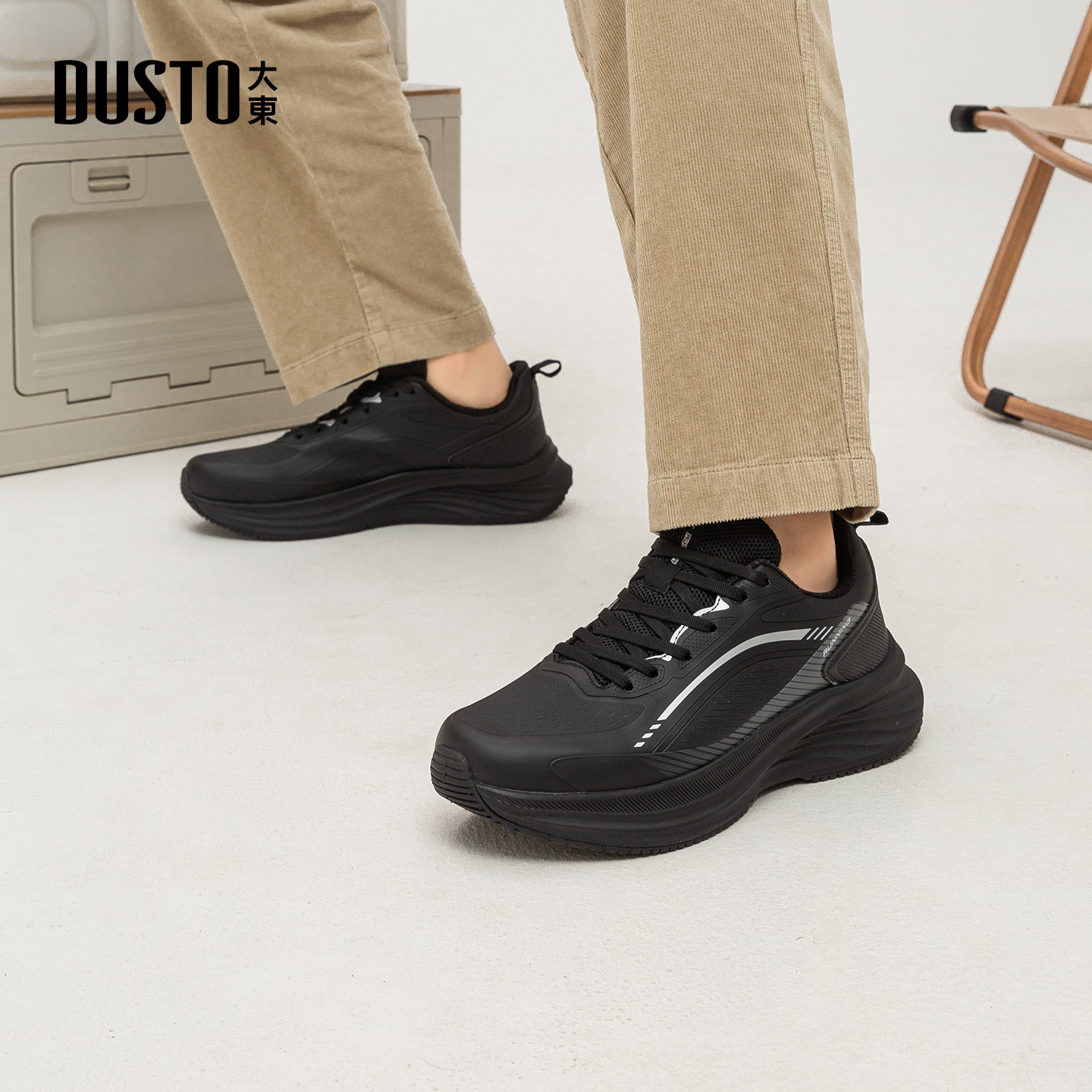 男士 秋季 轻便运动鞋 厚底休闲跑步鞋 大东官方黑色男鞋 男款 2025新款